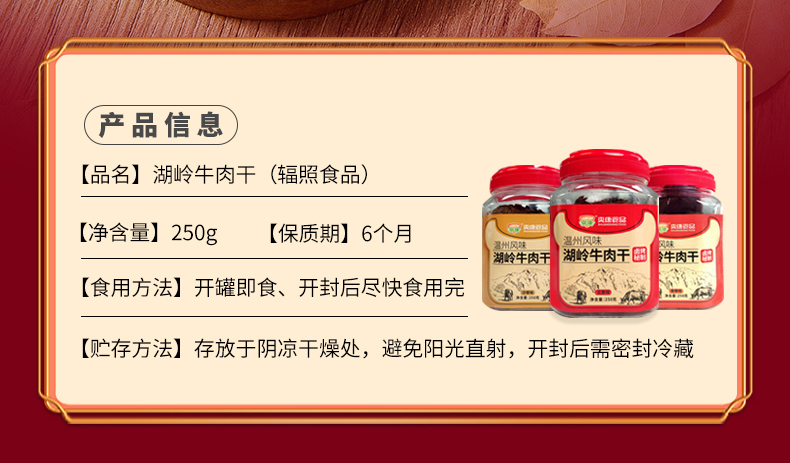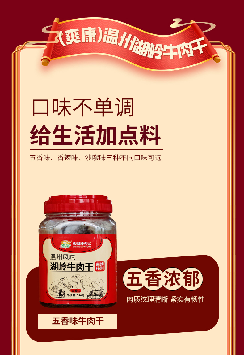【爽康】手撕温州湖岭特产牛肉干250g/罐