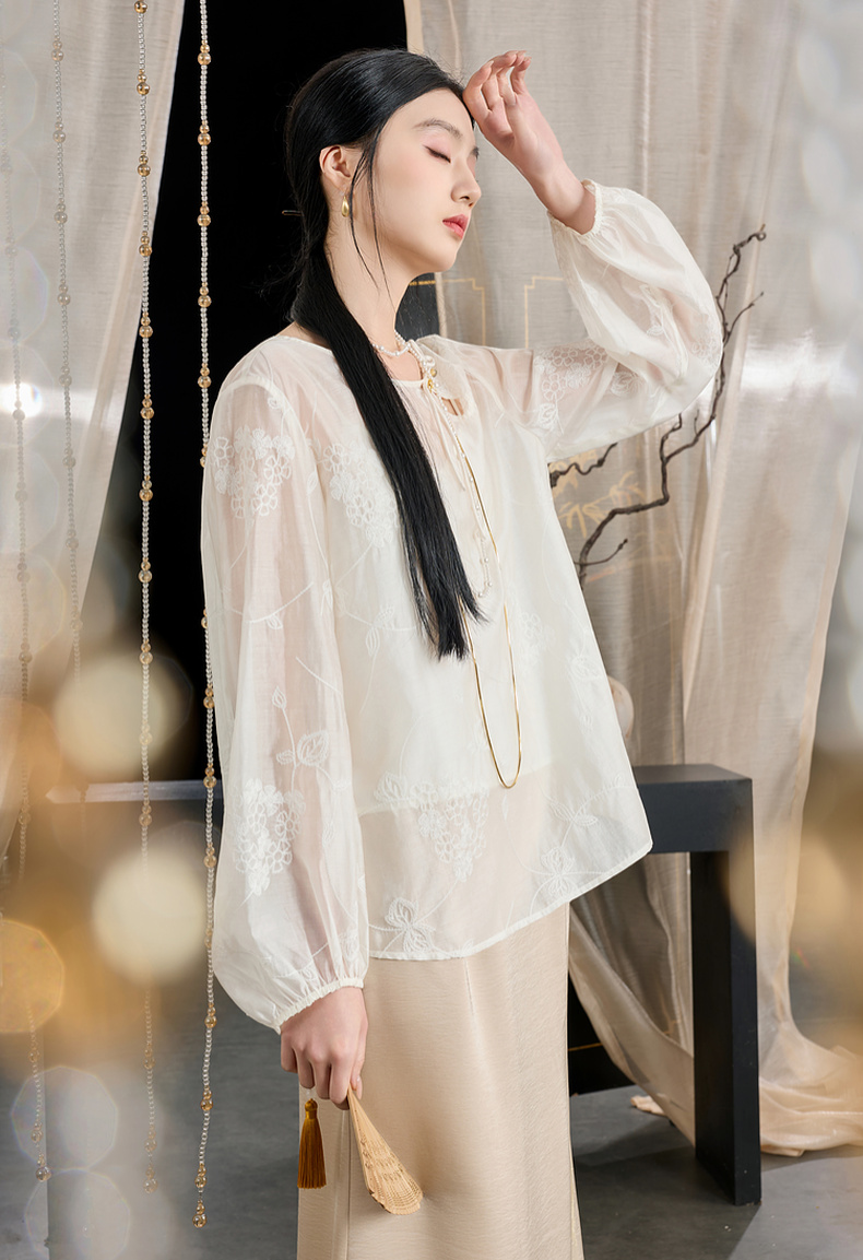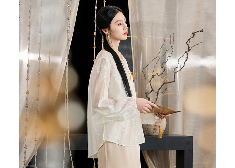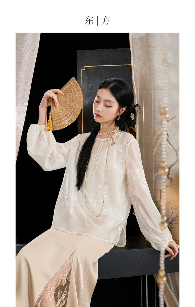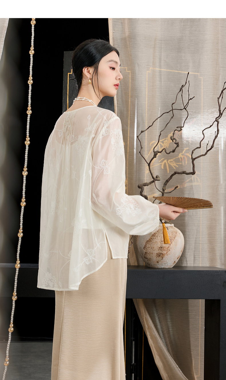 三彩【暗香花影】2025秋季新款绣花小衫圆领盘扣上衣宽松中式C