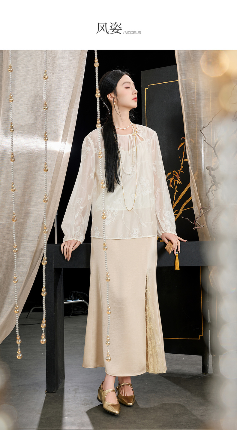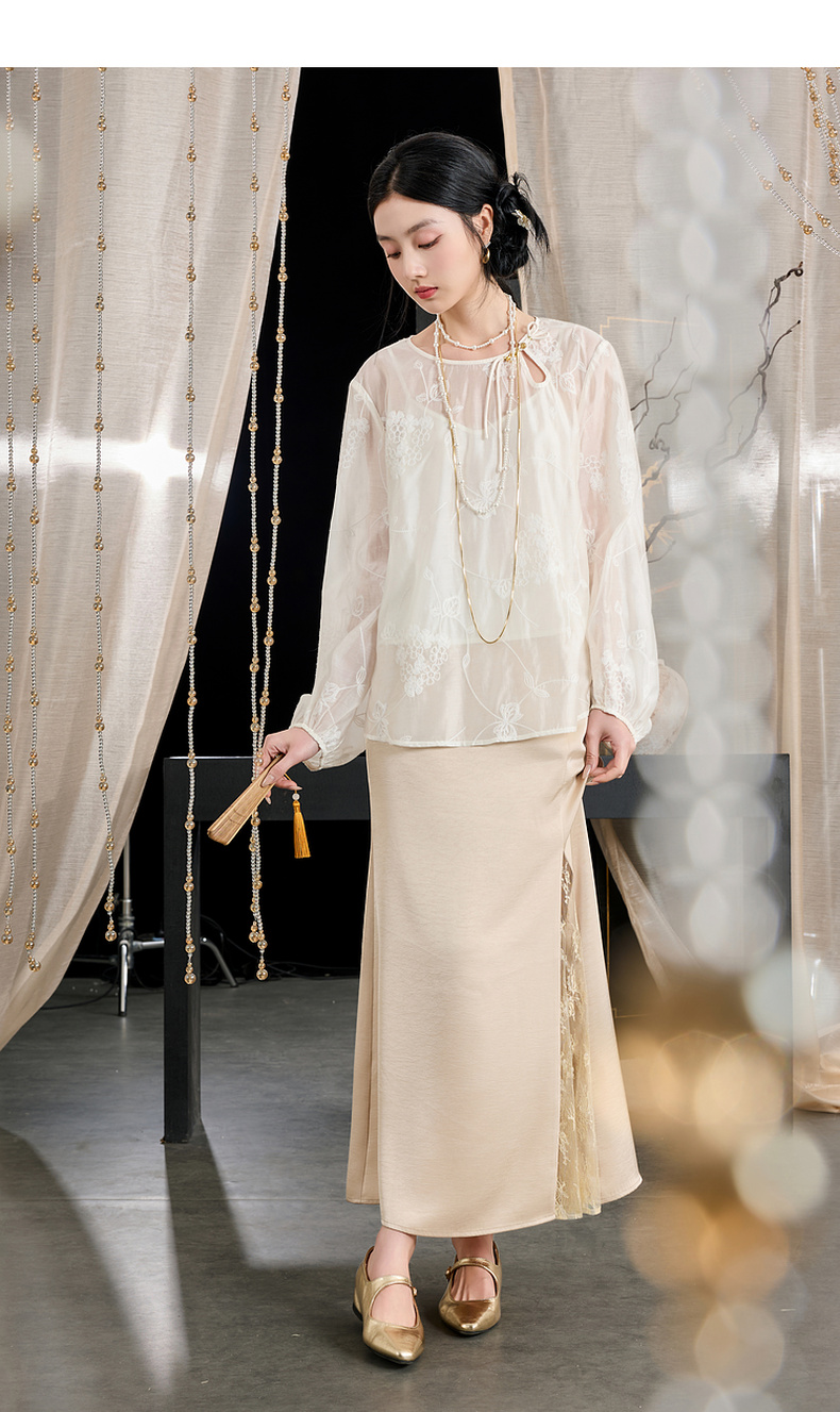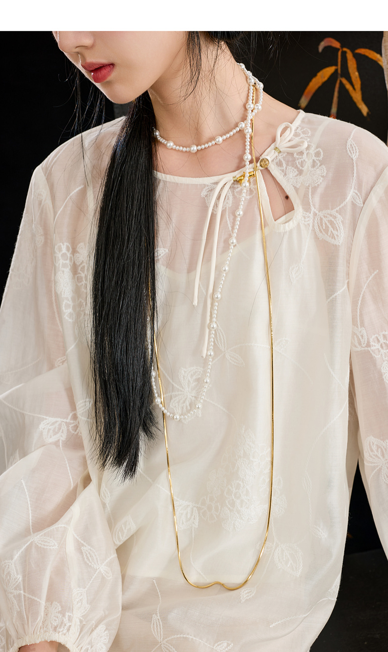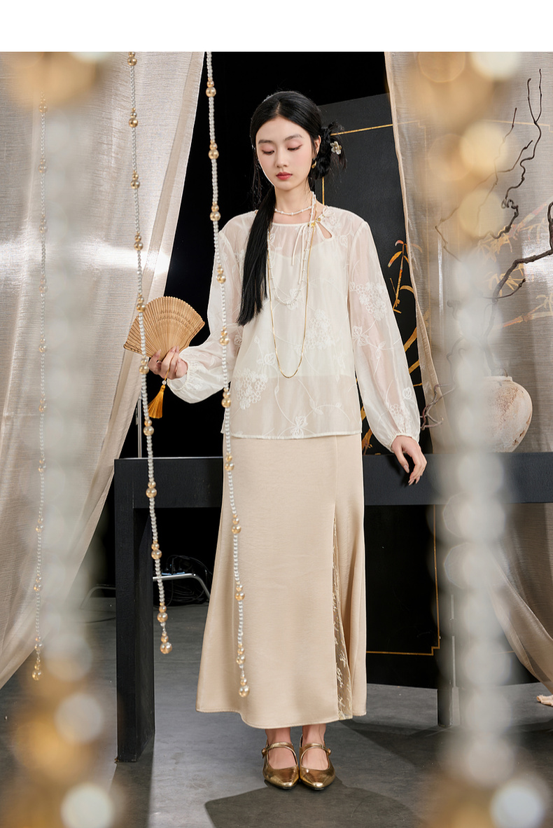 三彩【暗香花影】2025秋季新款绣花小衫圆领盘扣上衣宽松中式C