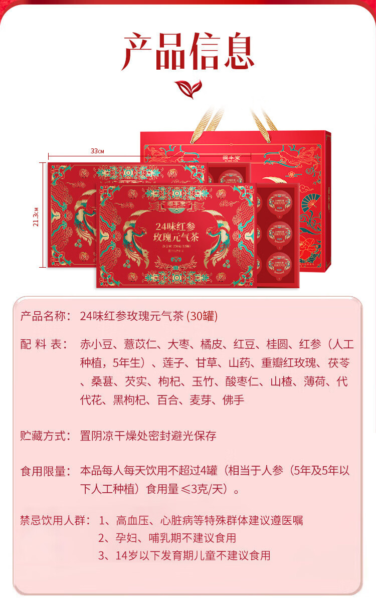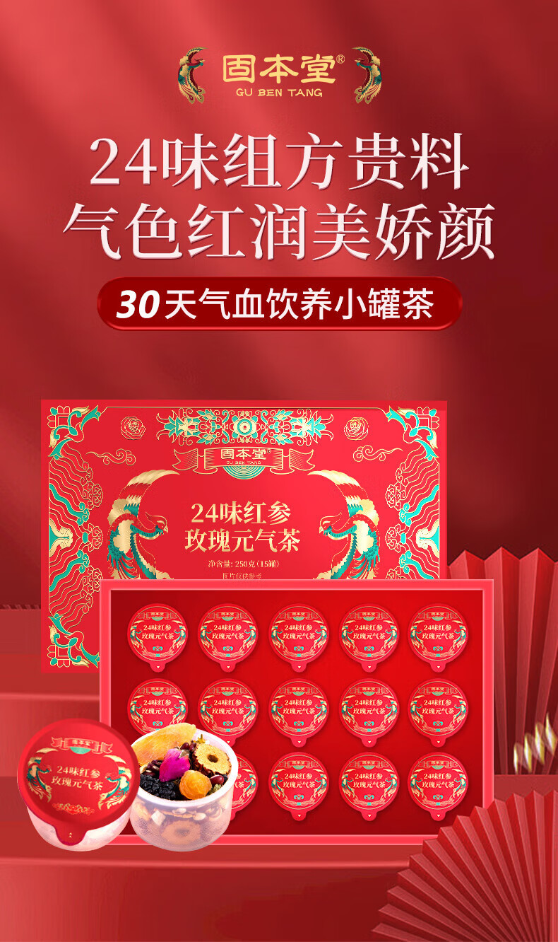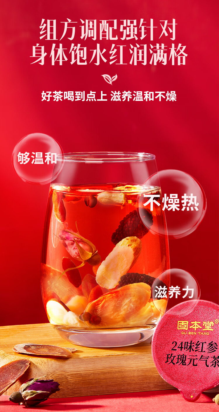 固本堂二十四味红参玫瑰元气茶