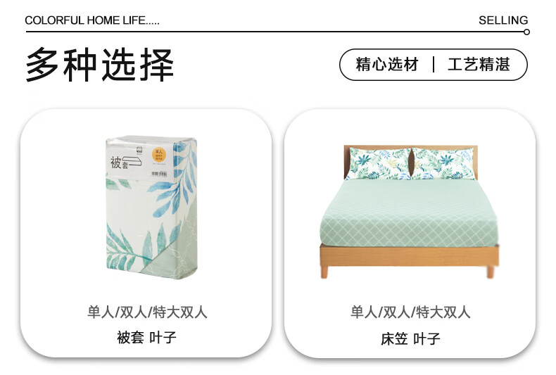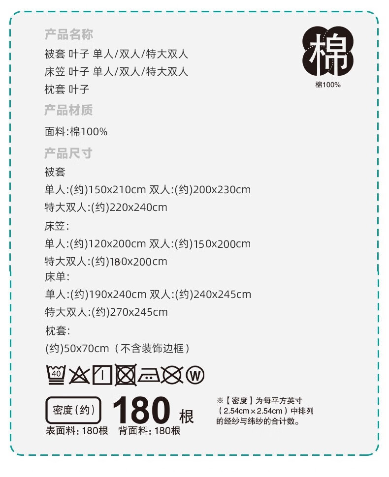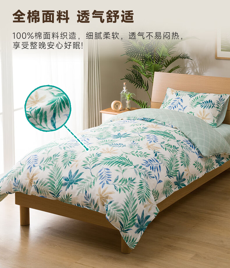 宿舍家用床上用品纯棉枕套被套床笠 叶子