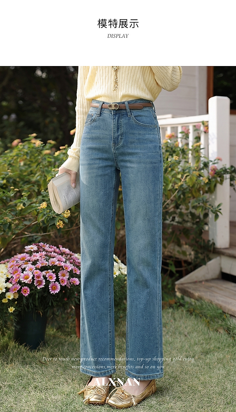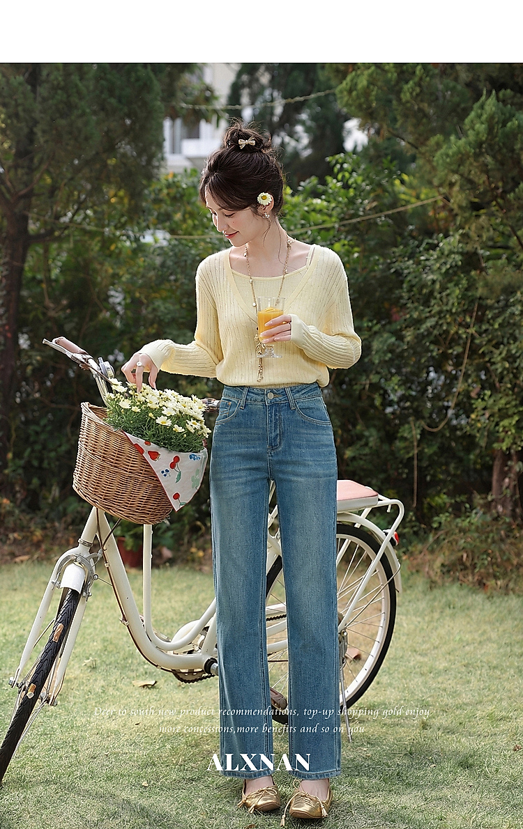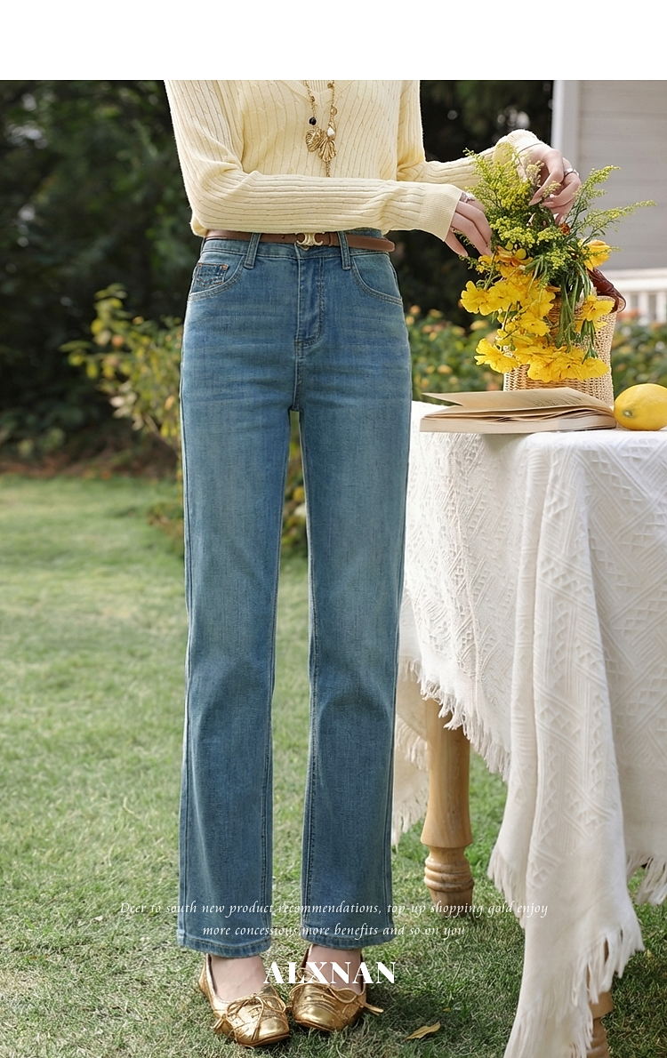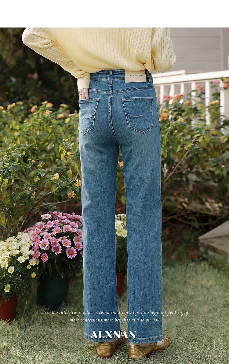 鹿向南「栀子清露」复古蓝色直筒牛仔裤女春季小个子显瘦垂感长裤