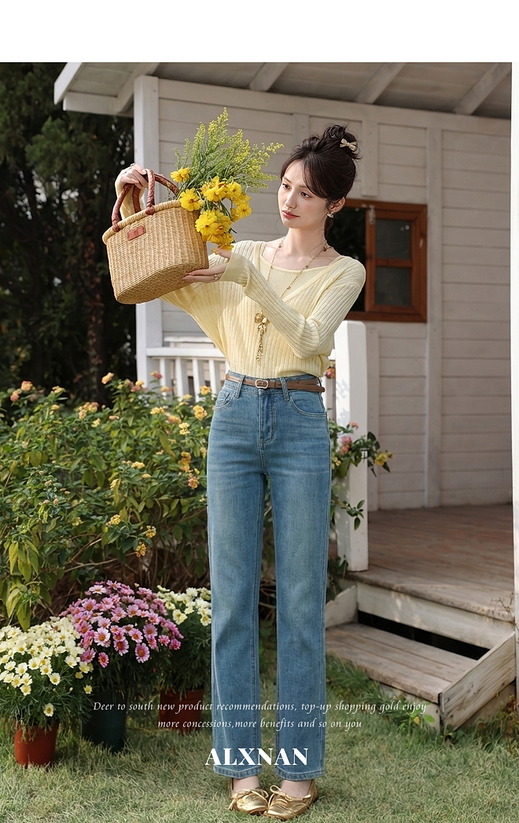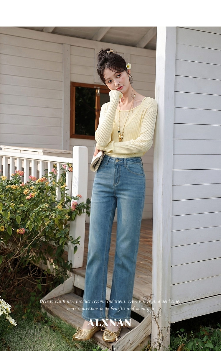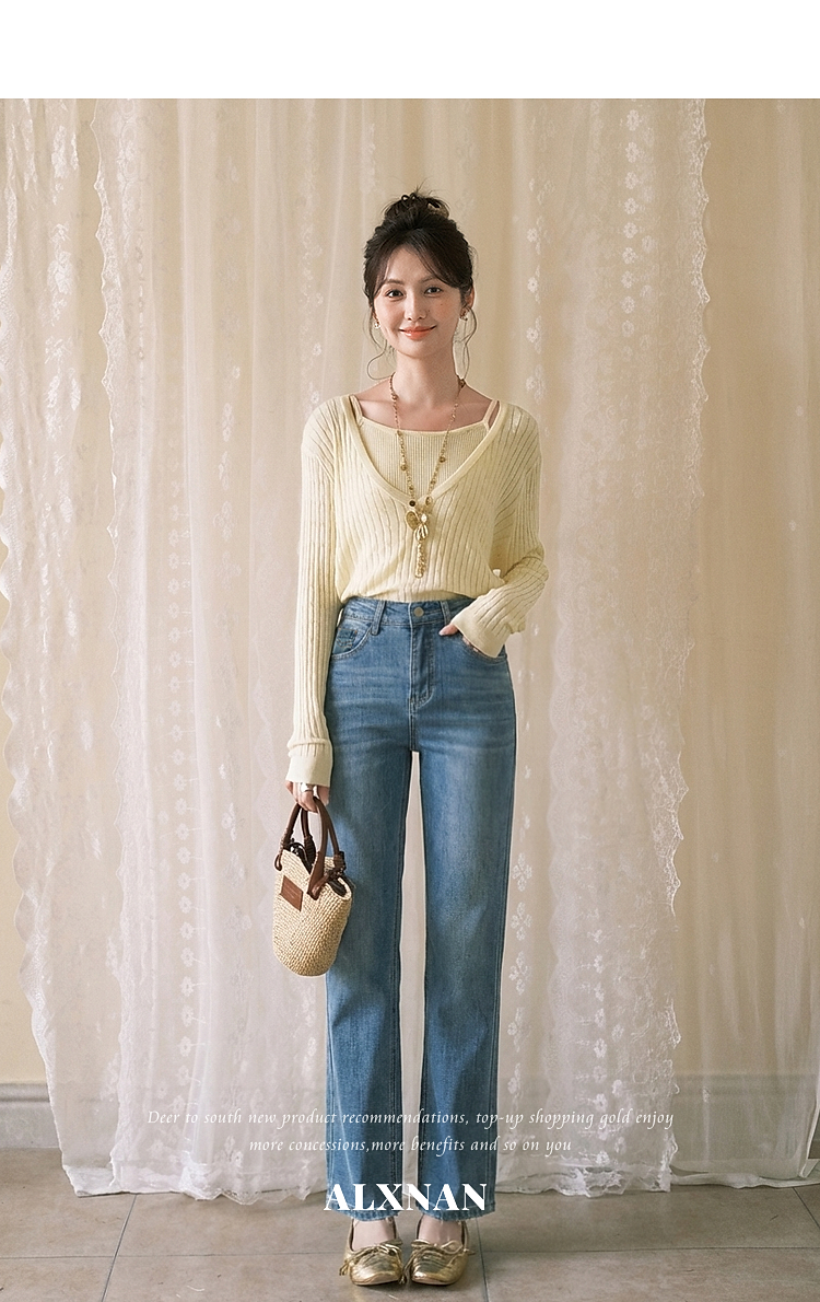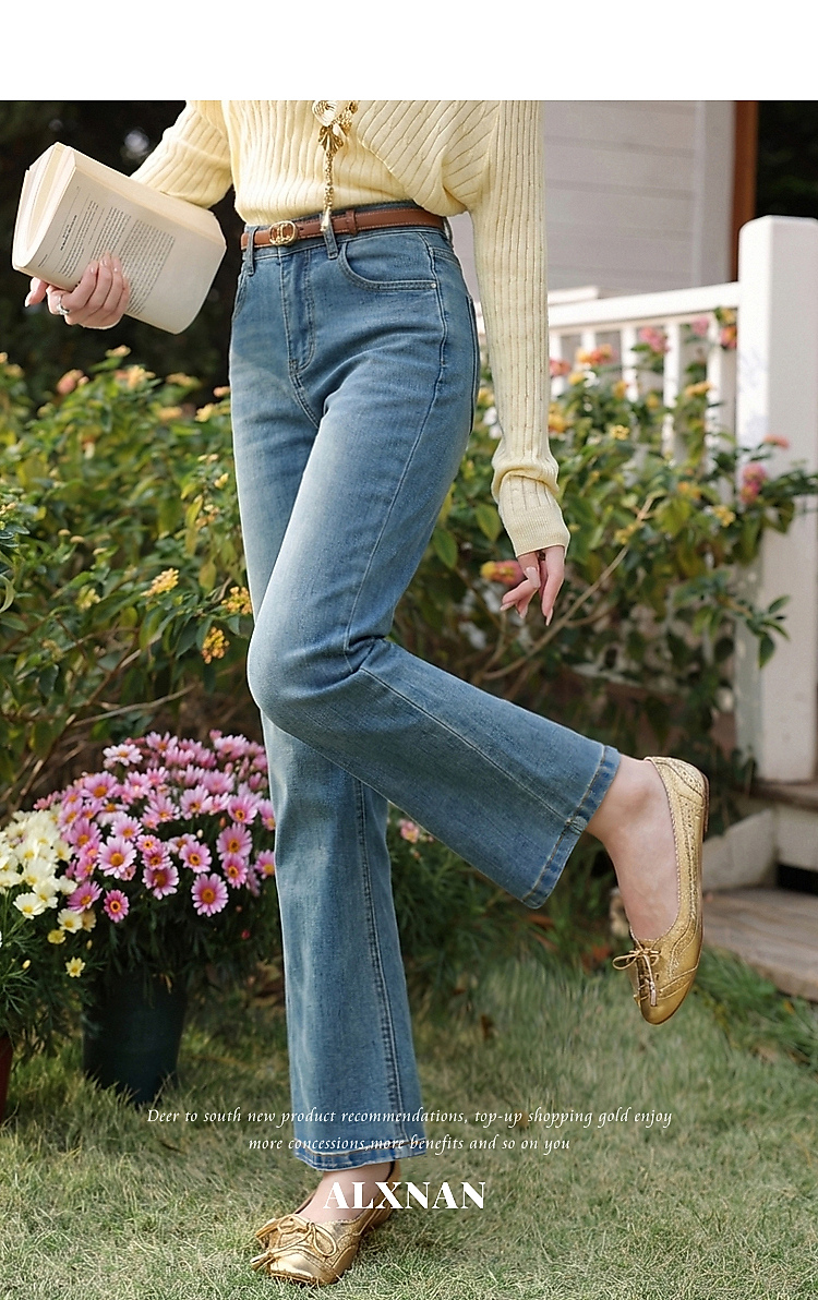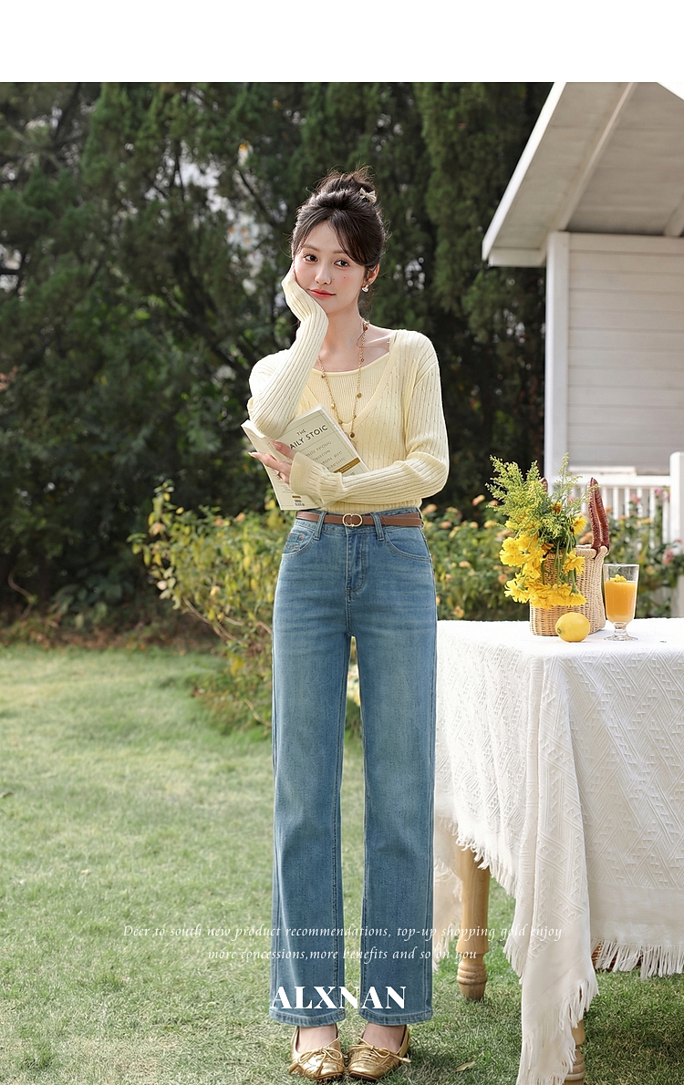 鹿向南「栀子清露」复古蓝色直筒牛仔裤女春季小个子显瘦垂感长裤