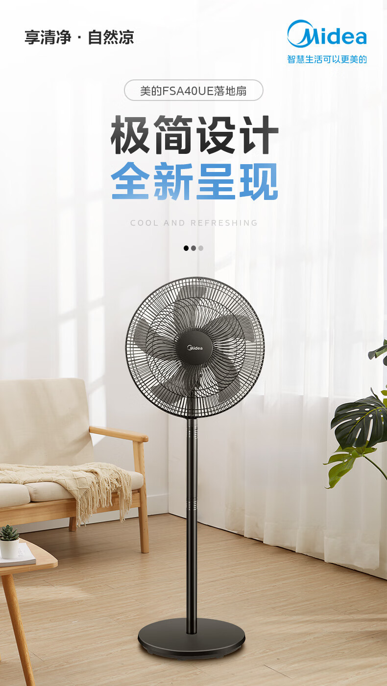 Midea/美的 家用16寸摇头立式风扇节能轻音台式电扇FSA40UE