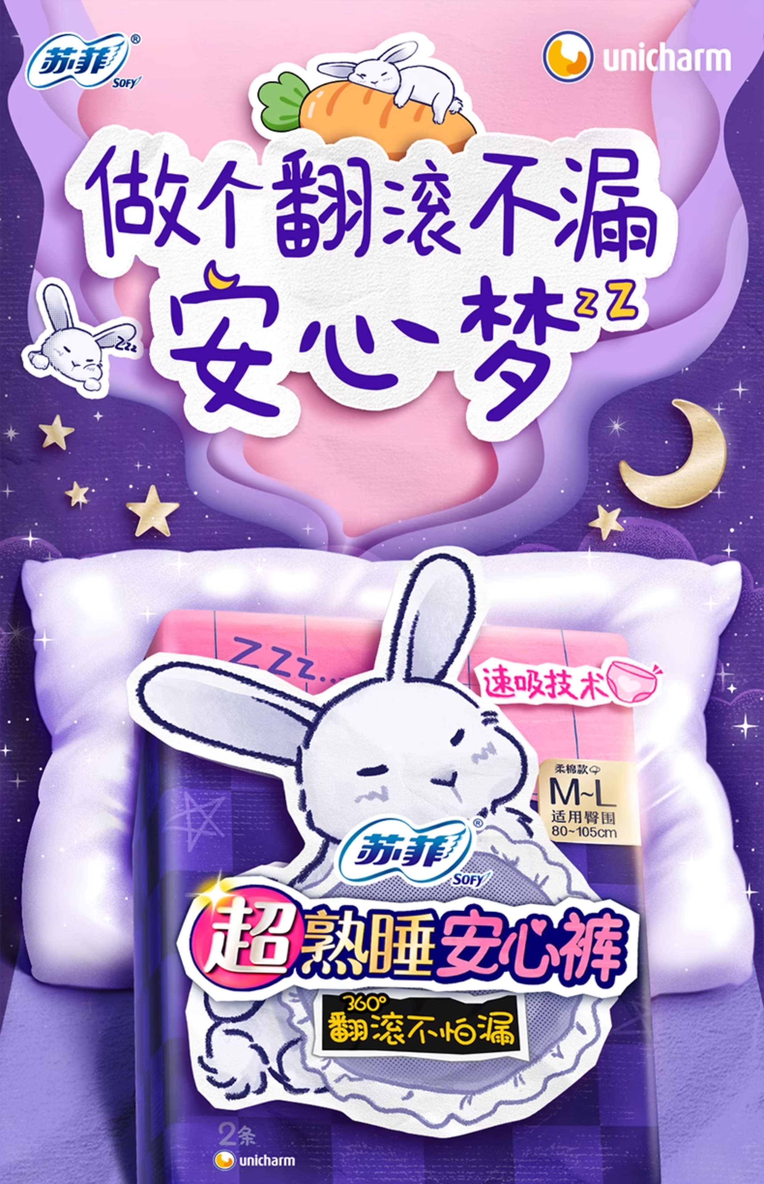 苏菲超熟睡安心裤柔棉款M~L/XL 2片装*9包_xd