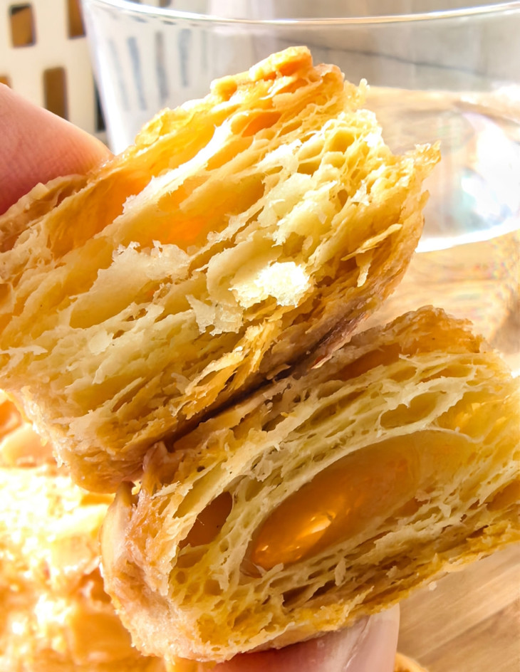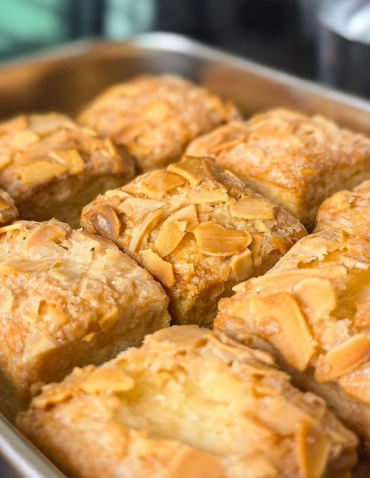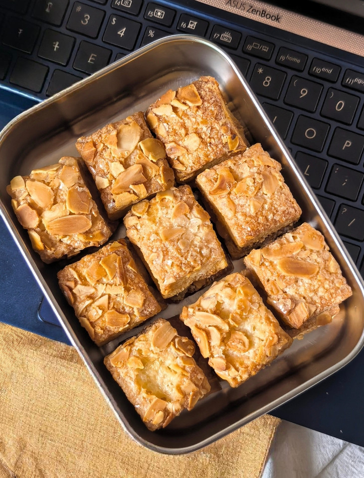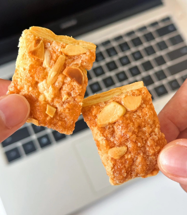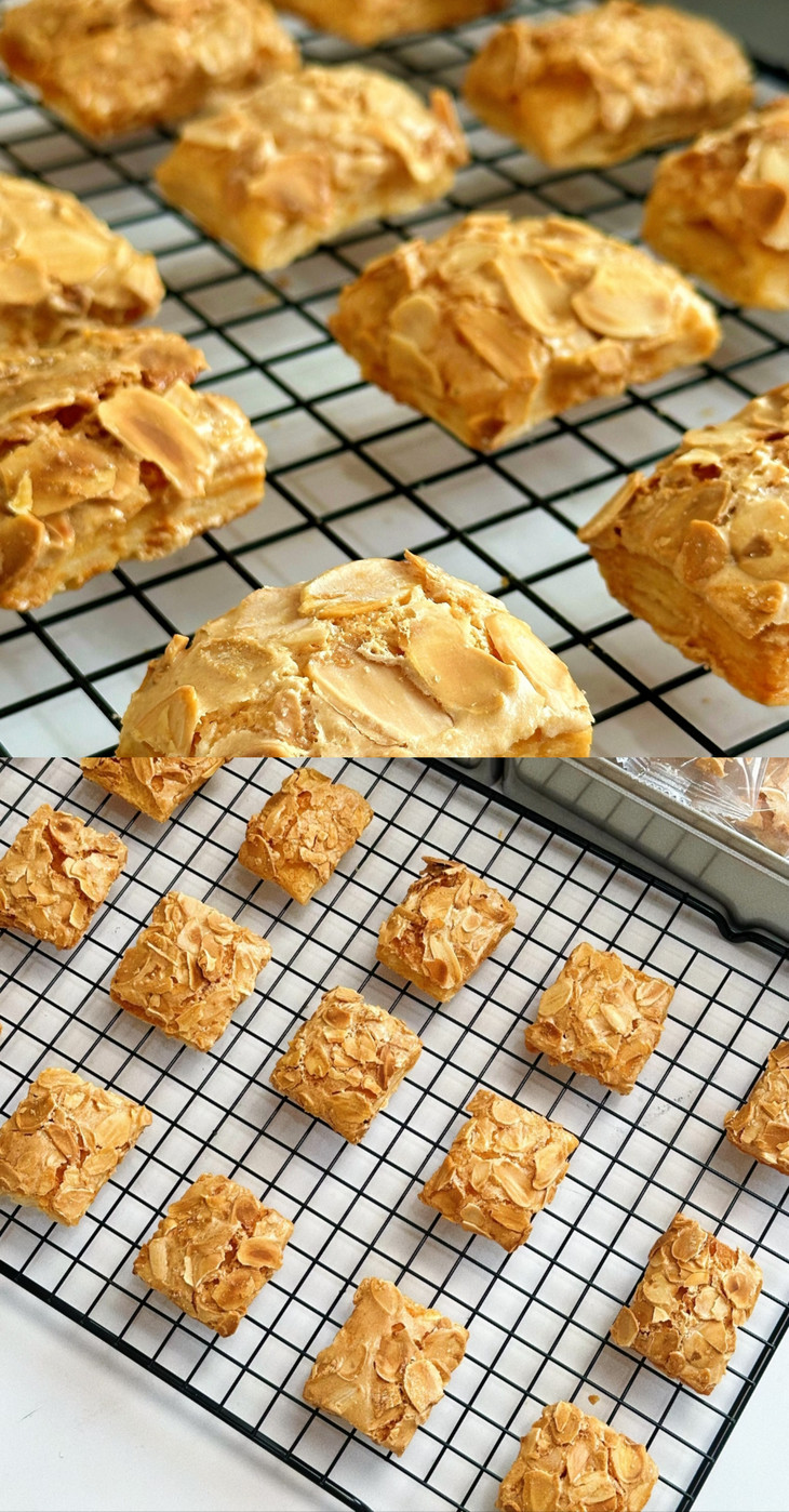 外层脆到碰一下就掉渣 中间几层又带点软乎乎的香 扁桃仁碎表面撒得超均匀 每口都能咬到扁桃仁片❗️ 手指上沾的酥渣都要舔干净 这口感真的太能打了 偷偷说我 放去微波炉热一下的版本是王炸😌 外皮烫乎乎的酥 酥皮在嘴里慢慢化开 坚果的脆和酥皮的软绵缠在一起🤣🤣🤣 扁桃仁被烤得油亮亮的,香到鼻子都要失灵 甜度刚好卡在“再吃一块也不腻”的程度~ 现在已列入我的早餐清单 每天不吃就嘴馋hhhh