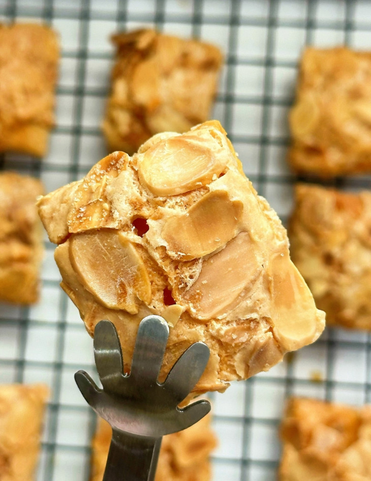 zui绝是表面的扁桃仁!师傅说高温容易烤焦发苦 低温就刚好——让扁桃仁在烤箱里“慢慢出油” 表皮烤得微微发皱带点焦糖味 咬开还是坚果本味 连那股子清甜味都锁得sisi的 一点不呛人~ 慢工出细活 高温烤的总带着点“急吼吼”的焦气 现在才算懂:多花那几十分钟等低温慢烤是多值得 是把食材本真的香 一点一点烤进骨子里了呀~ 这种藏在工艺里的用心,吃一口就懂✨