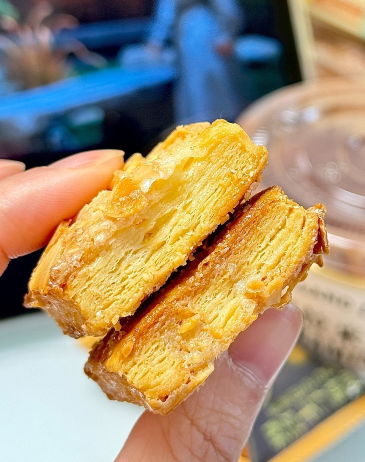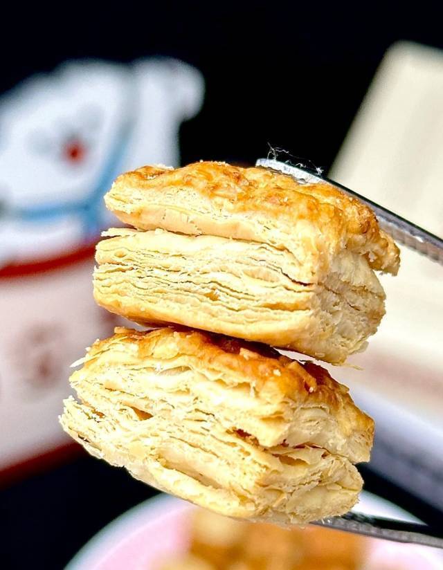 🥰薄过A4纸的千层酥!机器根本仿不来 老师傅手工折叠256层,每层≤0.12mm 咬下时层层塌陷 咔嚓感隔壁薯片都沉默了 🧈 ≥30%黄油添加量 这真的很敢下料啊! (普通千层酥≤12%❗️省下的黄油都够炒盘菜了) 单这一步的投入成ben就已经拉到顶了 别人省下的料,我们全怼进香气里!