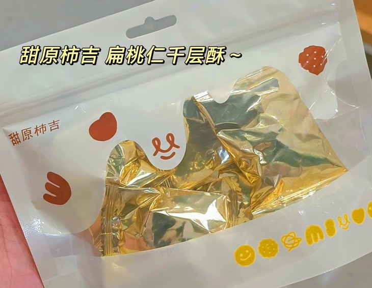 29.9/4袋💥简直酥到犯规「甜原柿吉 扁桃仁千层酥」黄油与坚果的香气交织🥺 每一口都像在轻咬一朵酥云☁️层层酥皮间藏着温柔的奶香🥛 看得见的层层酥皮 配料表干净!!