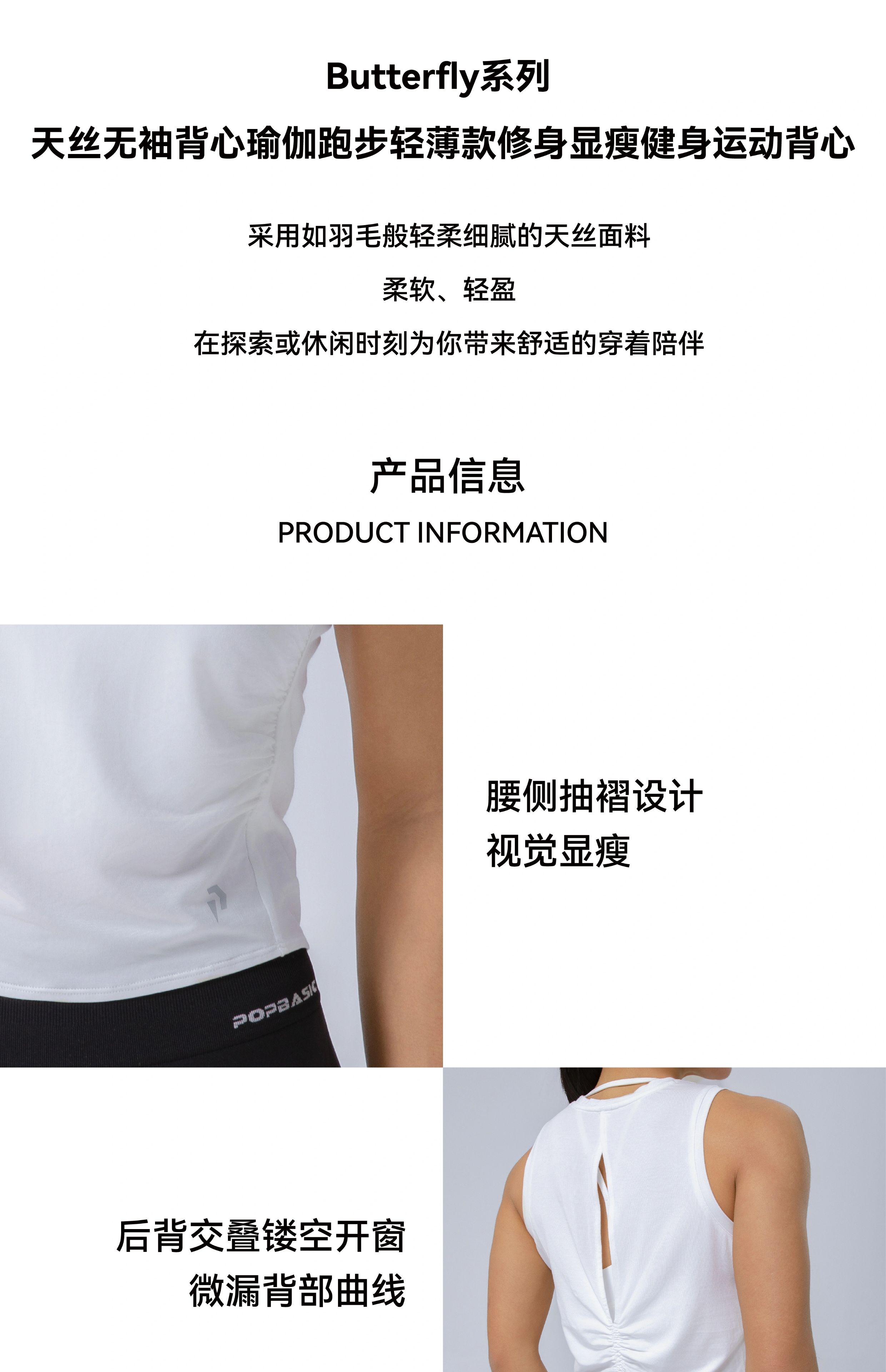 POPBASIC天丝无袖背心瑜伽跑步轻薄款修身显瘦健身运动背心