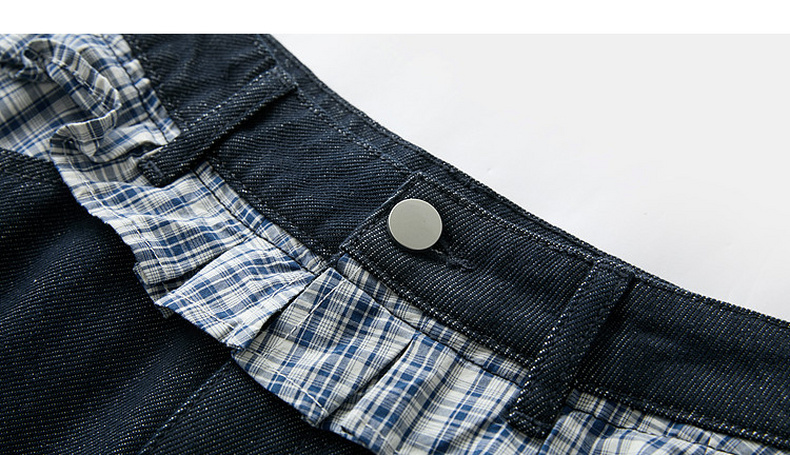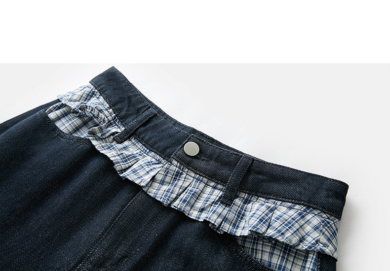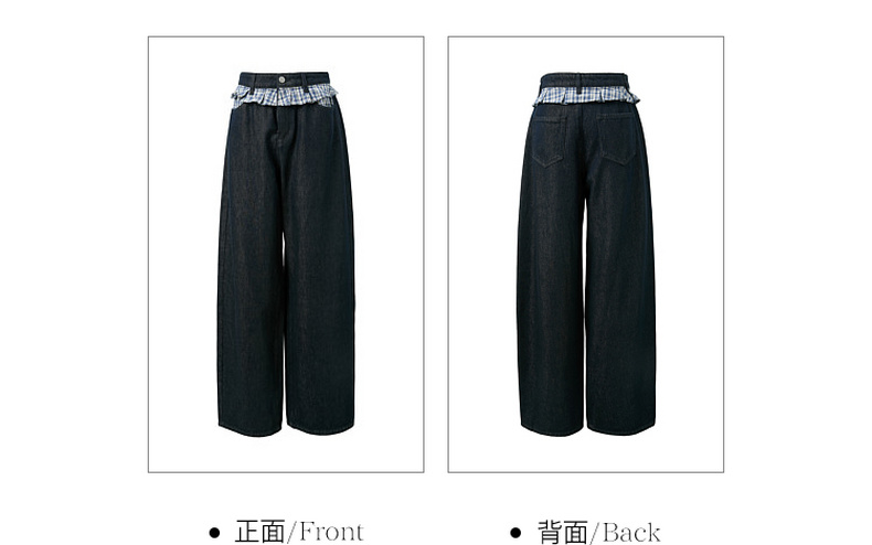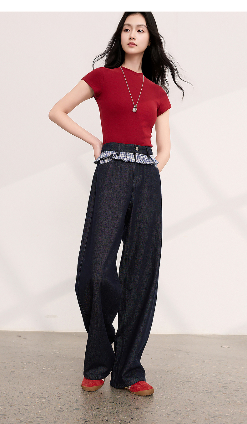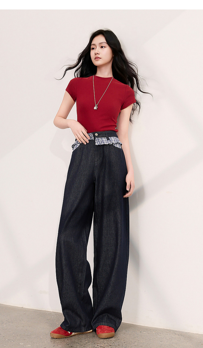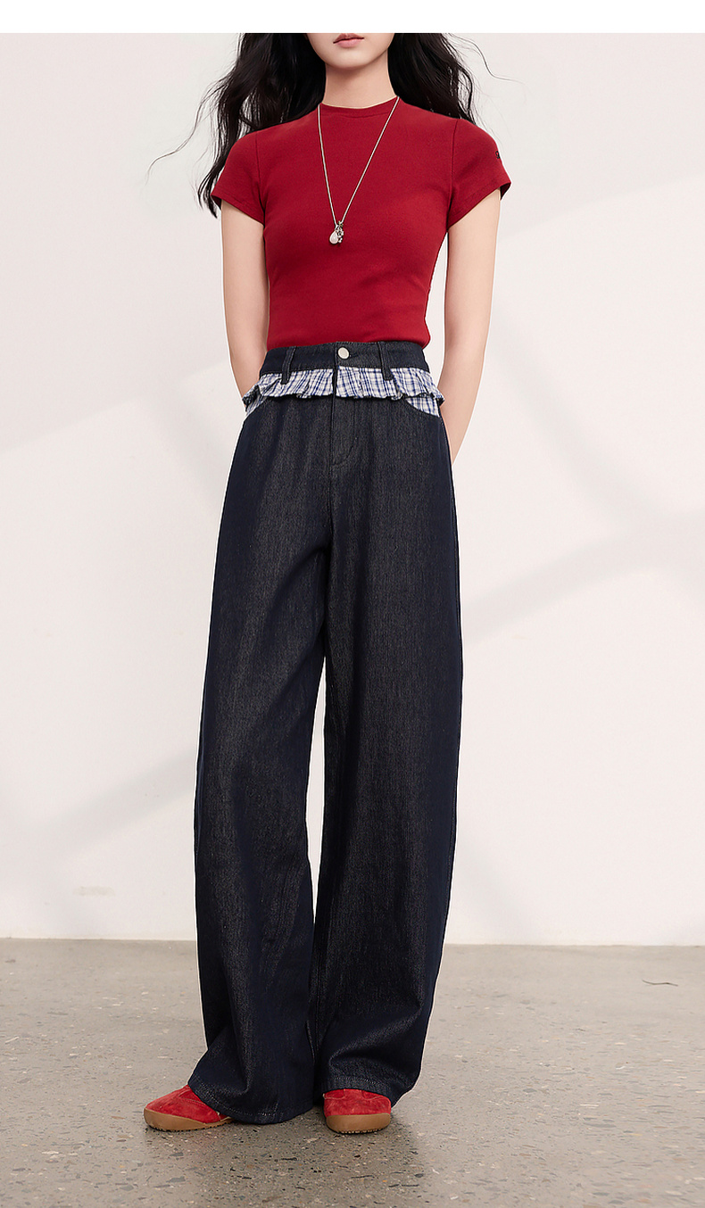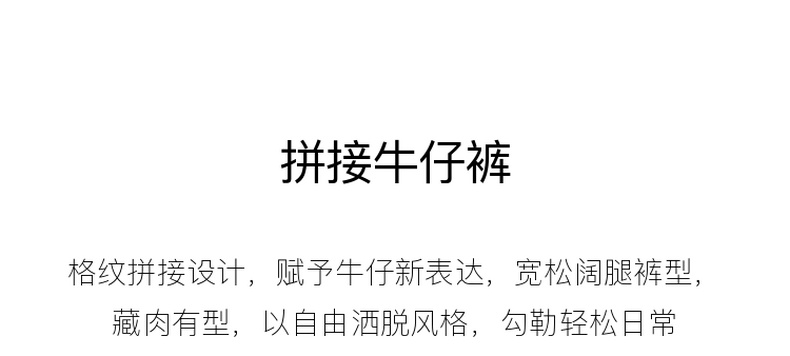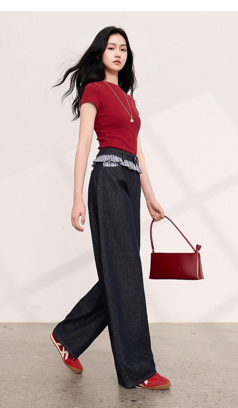 三彩2026夏季新款拼接牛仔裤设计感宽松阔腿长裤时尚M