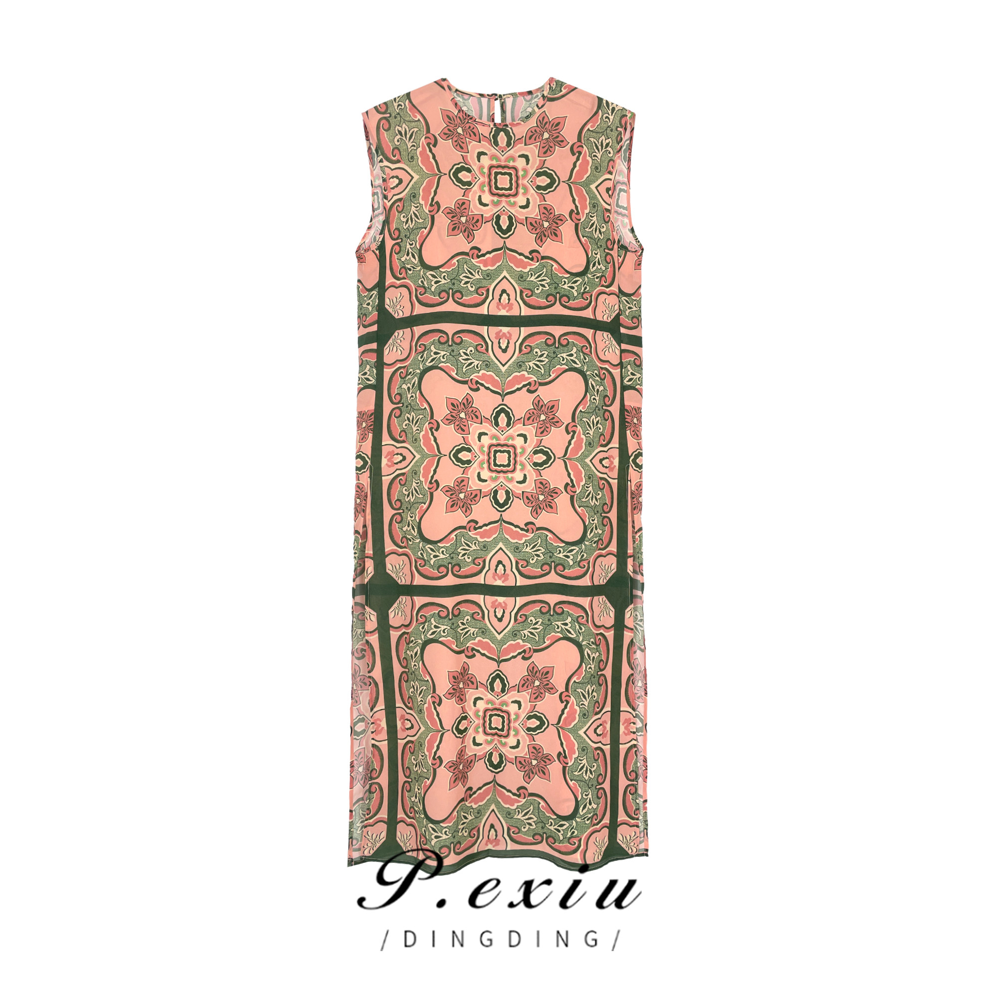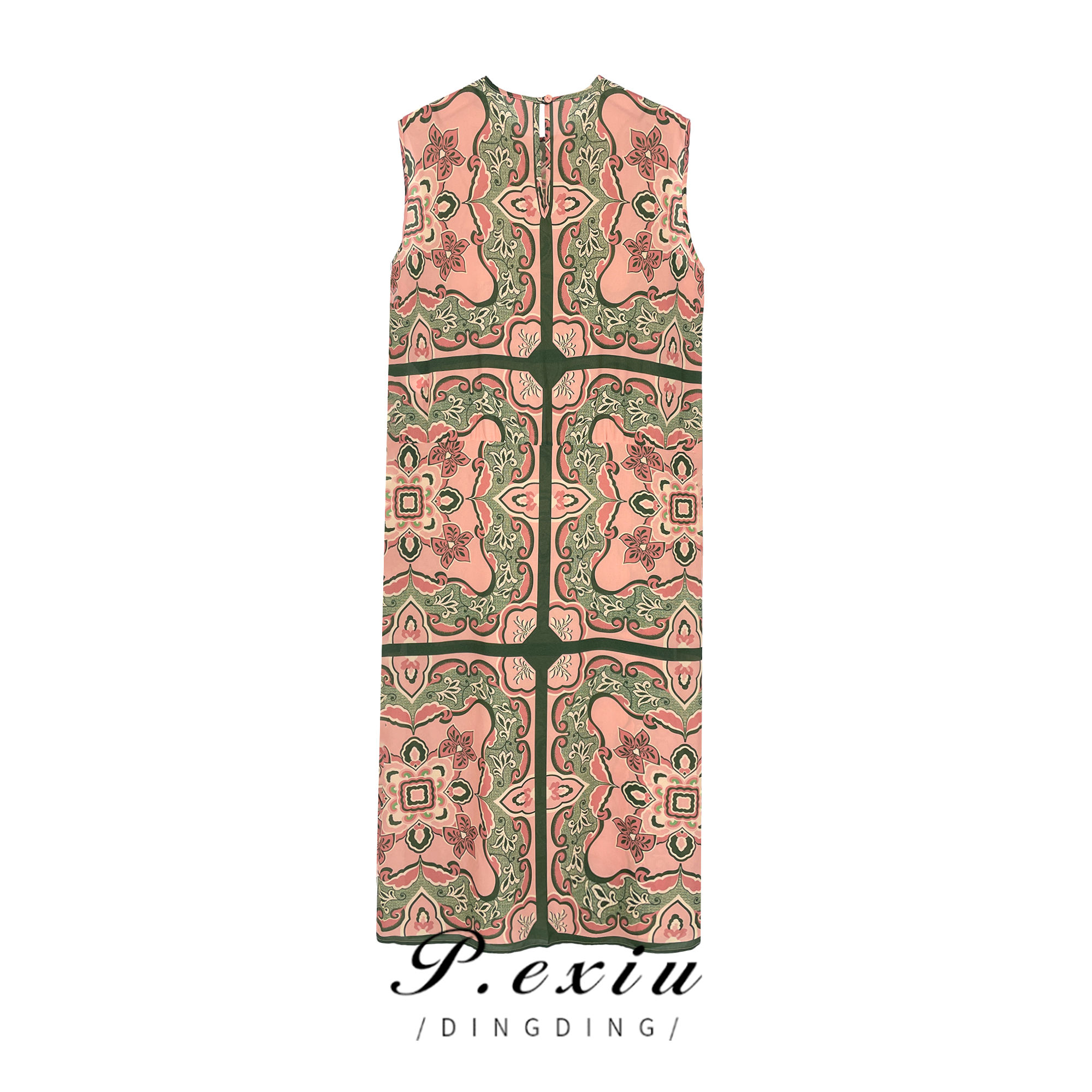 PanYiXiu/潘依绣【南风里】真-丝-浪漫复古茶歇无袖连衣裙W-61349