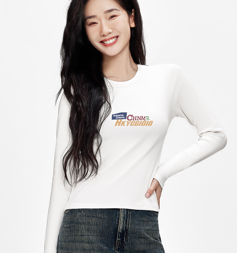 「棉的美学」秋冬修身显瘦长袖T恤女个性印花软糯百搭经典上衣