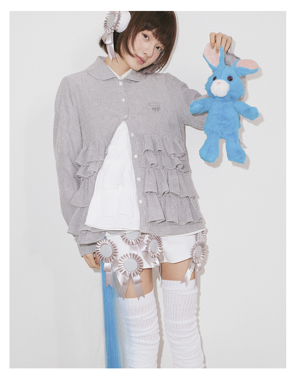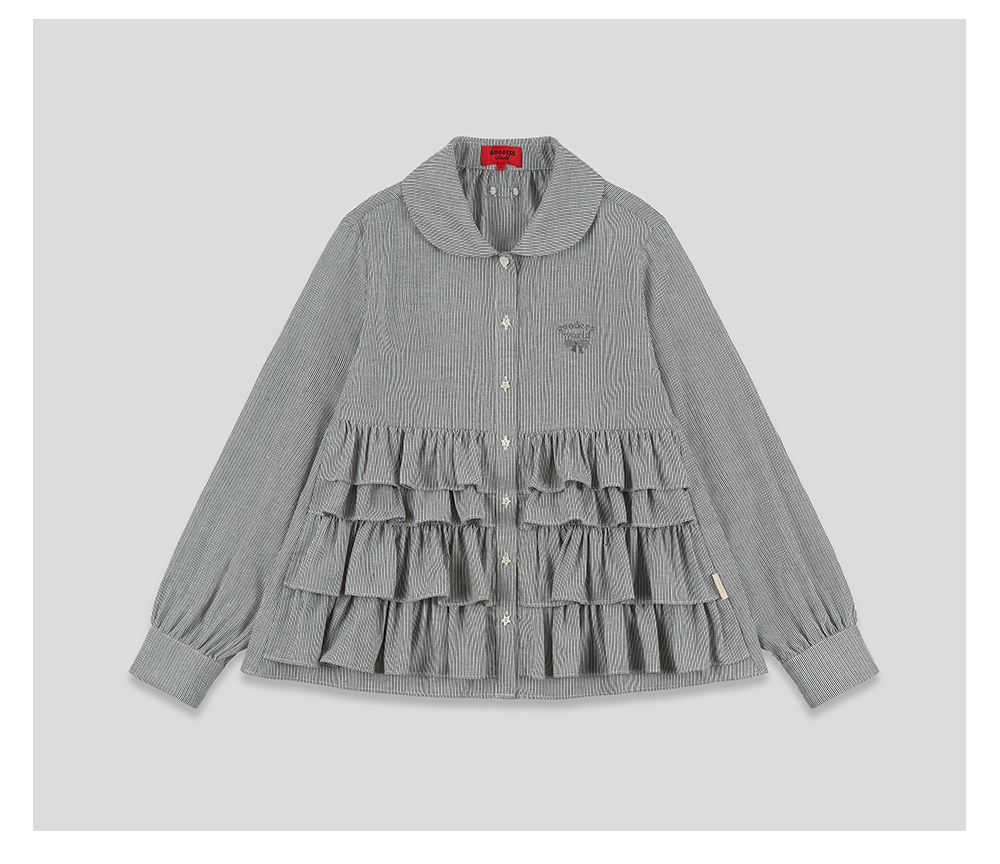 GOODBAI GOODEES 新款气质甜美时尚荷叶边长袖衬衫上衣