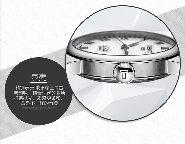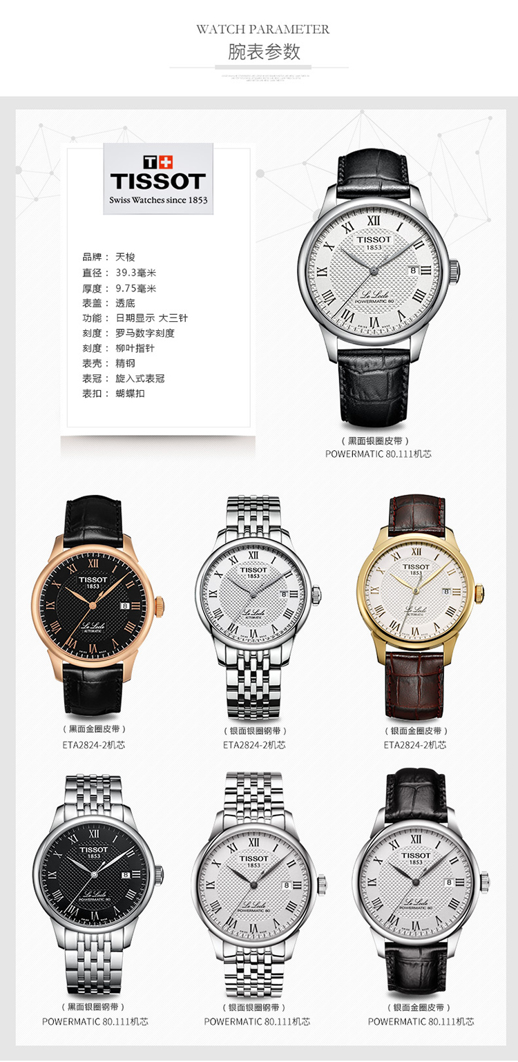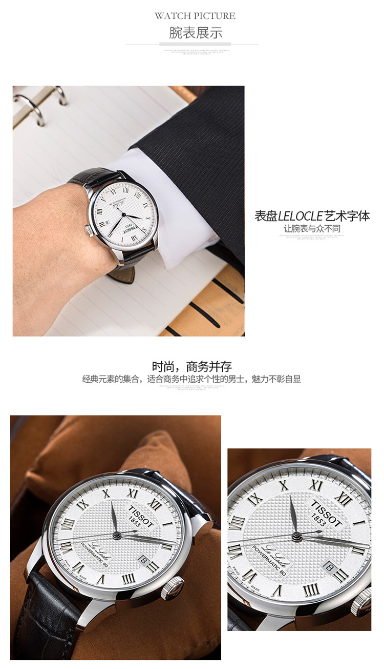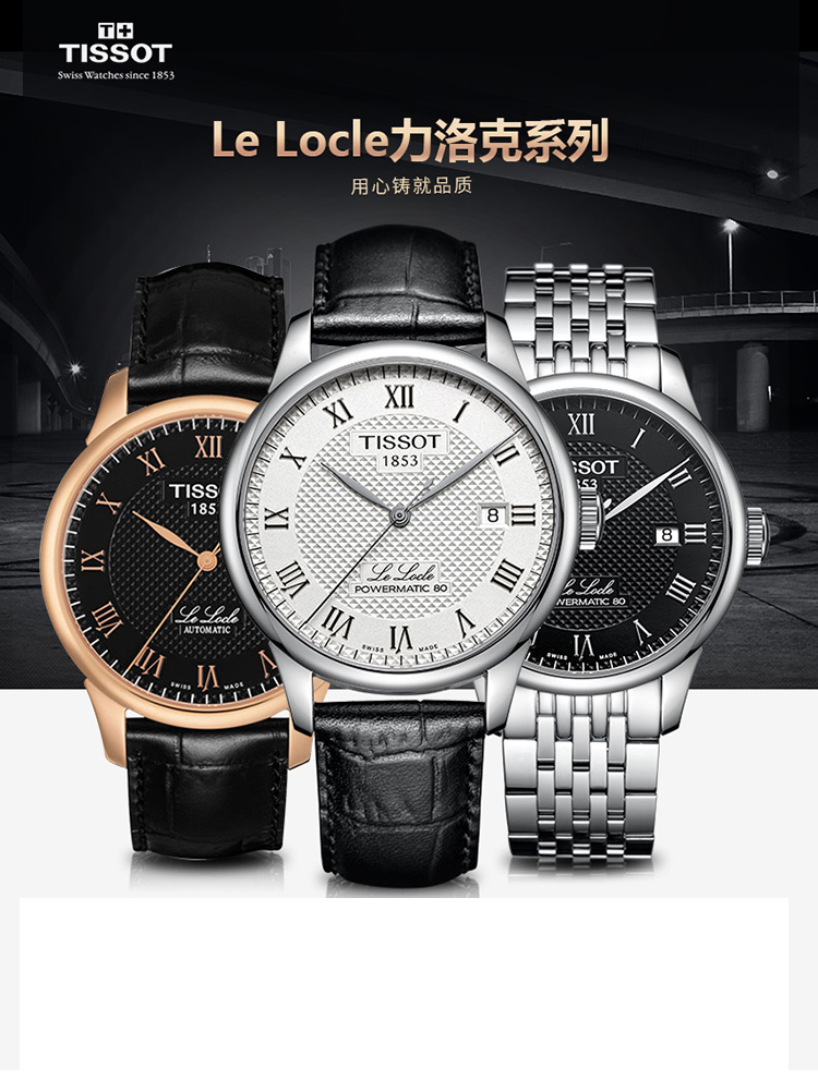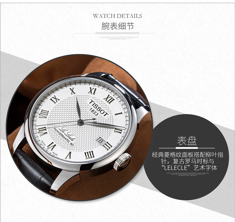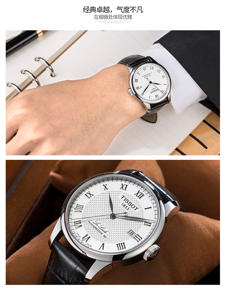天梭Tissot力洛克系列80机芯机械男表银盘皮带 T006.407.16.033.00