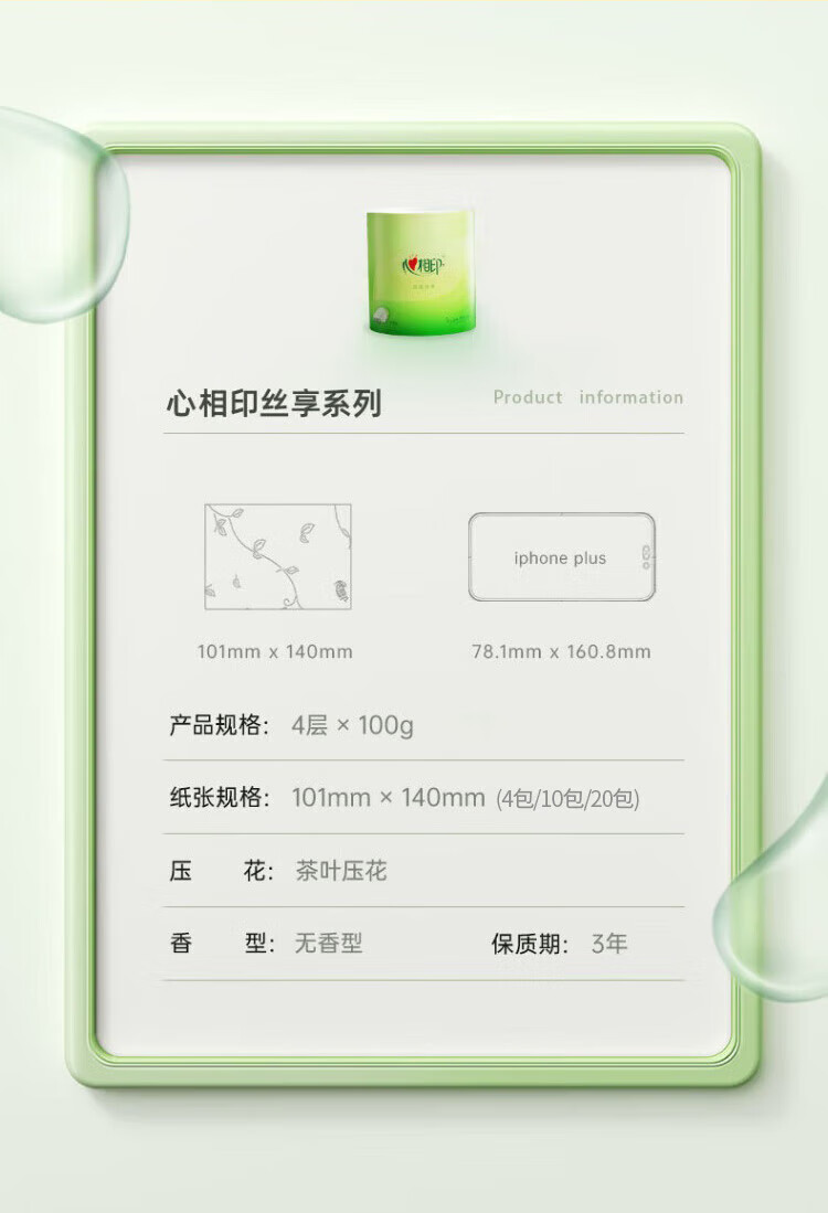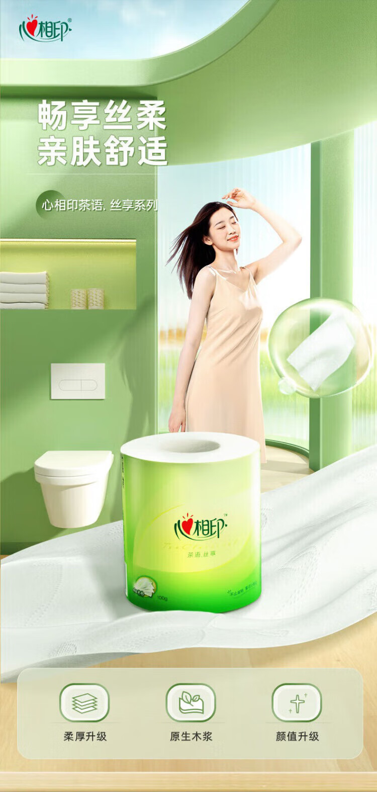 心相印卷纸茶语丝享100克20卷4层加厚 家用厕纸卫生纸 整箱(新旧交替)