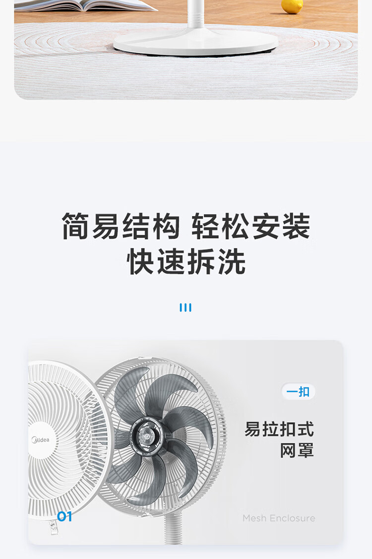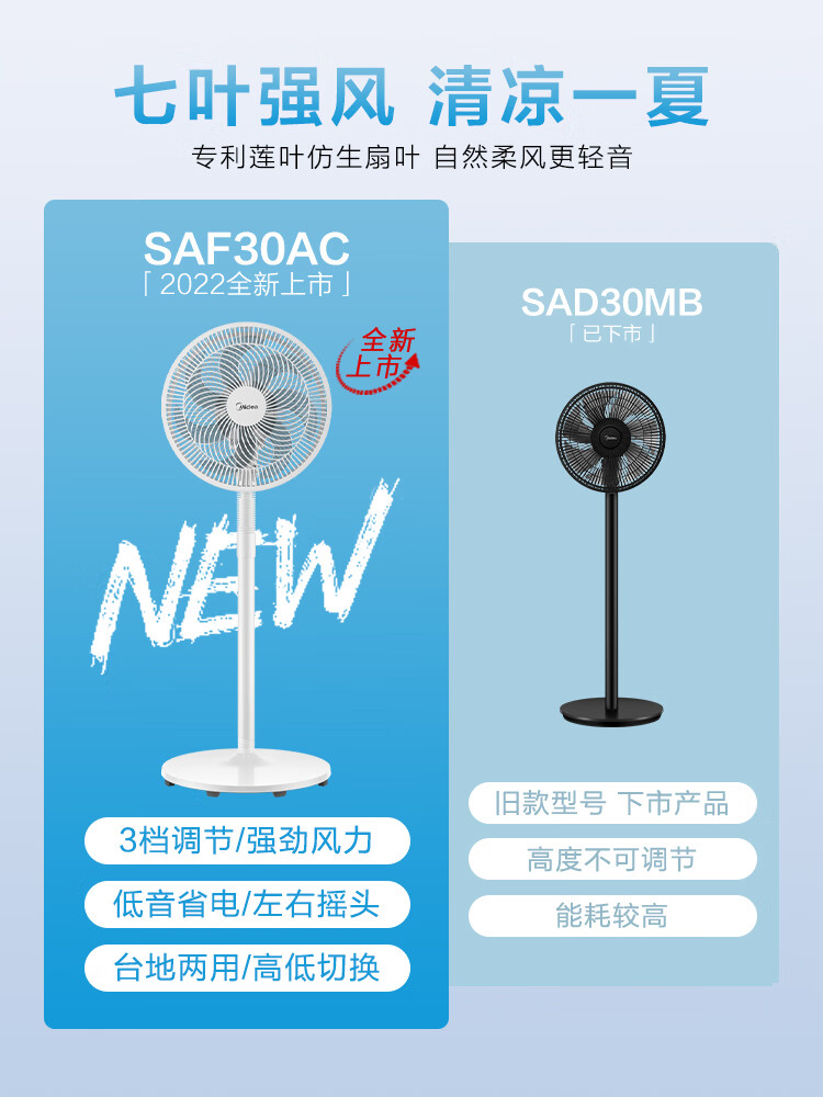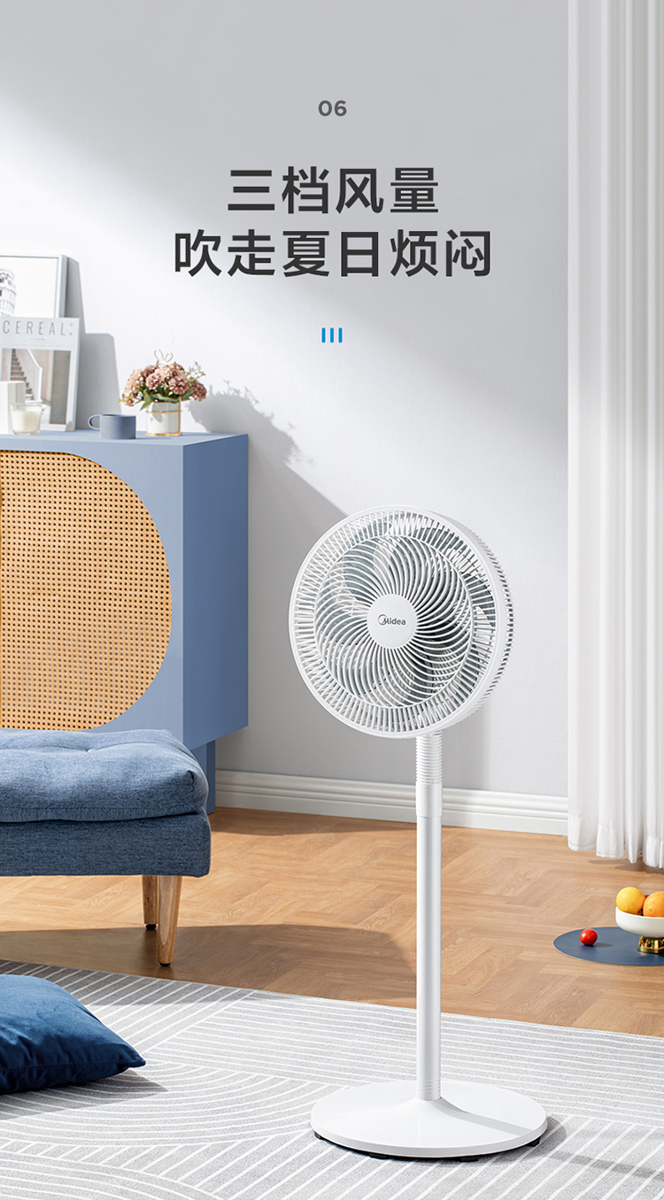 【家用电器】美的(Midea)电风扇落地电扇台式桌面台扇办公室宿舍低音空气循环扇小电扇白色落地扇 SAF30AC