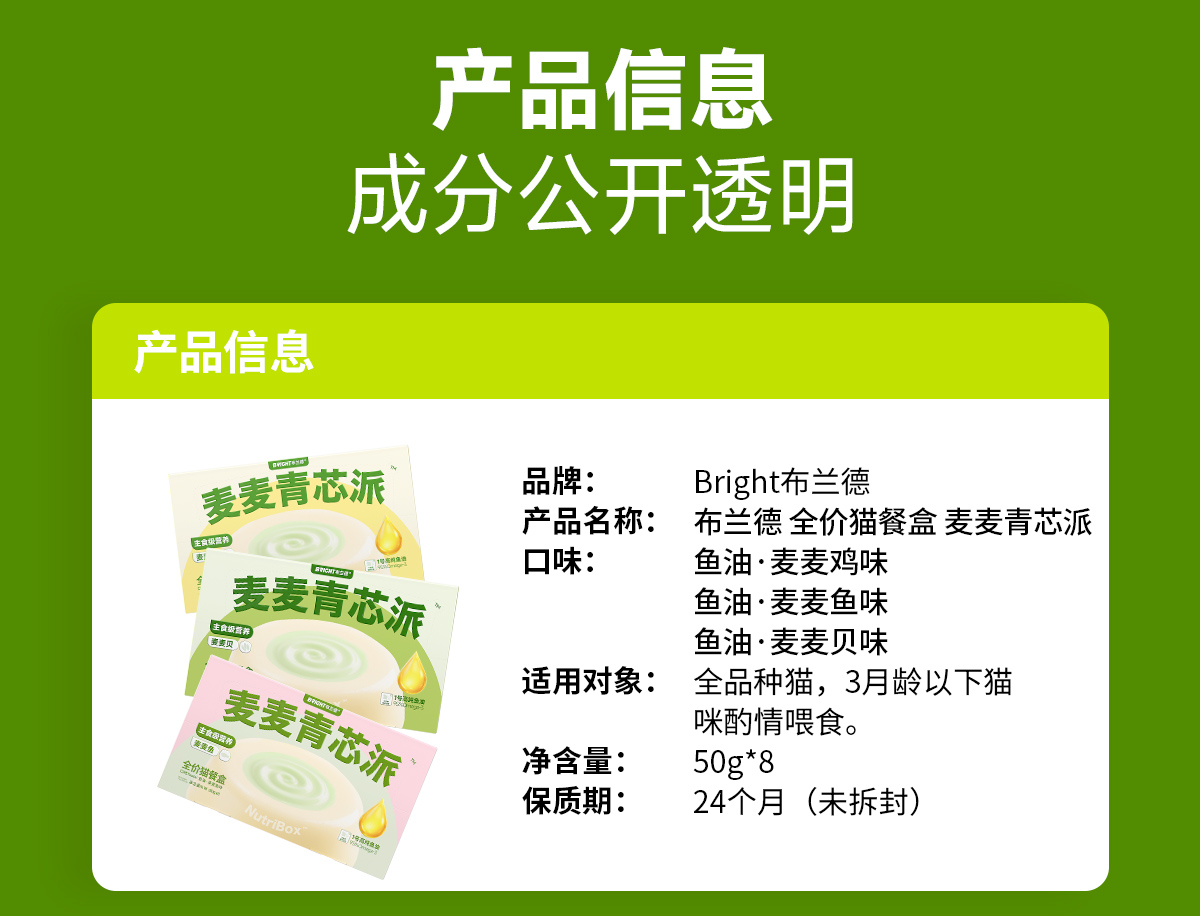 【新品】麦麦青芯派高纯鱼油羊奶全价主食猫餐盒 400g/盒