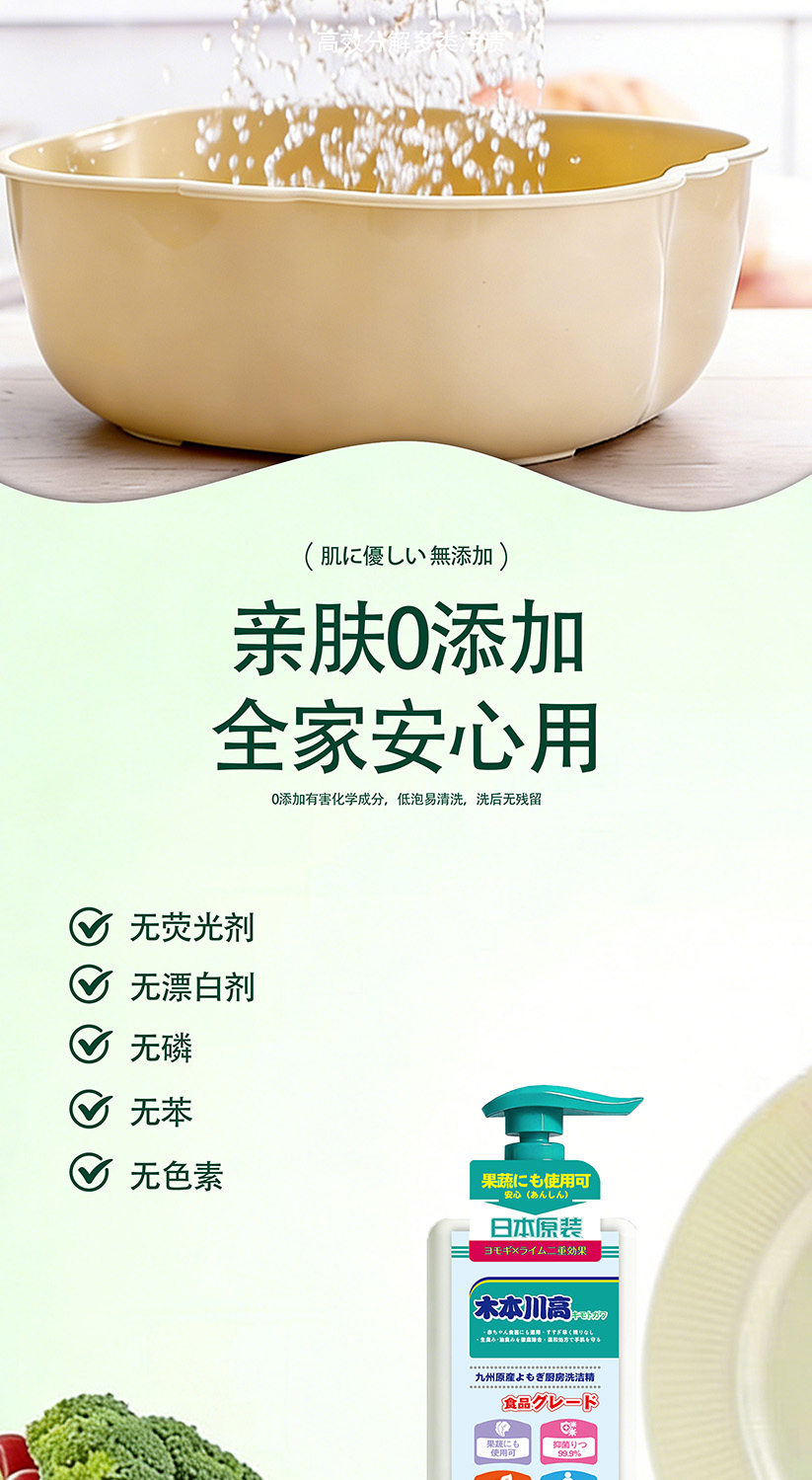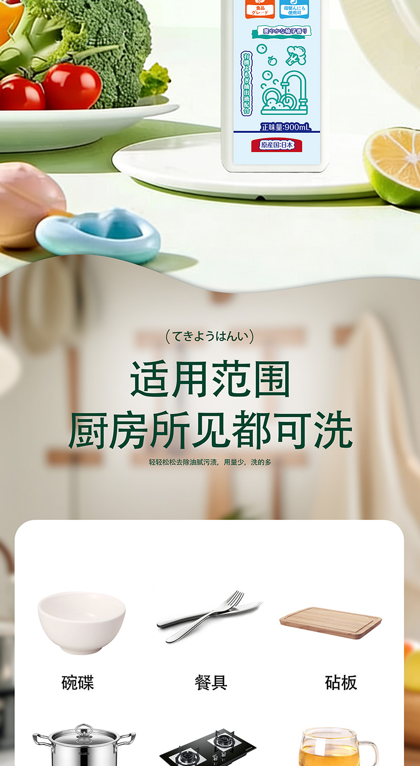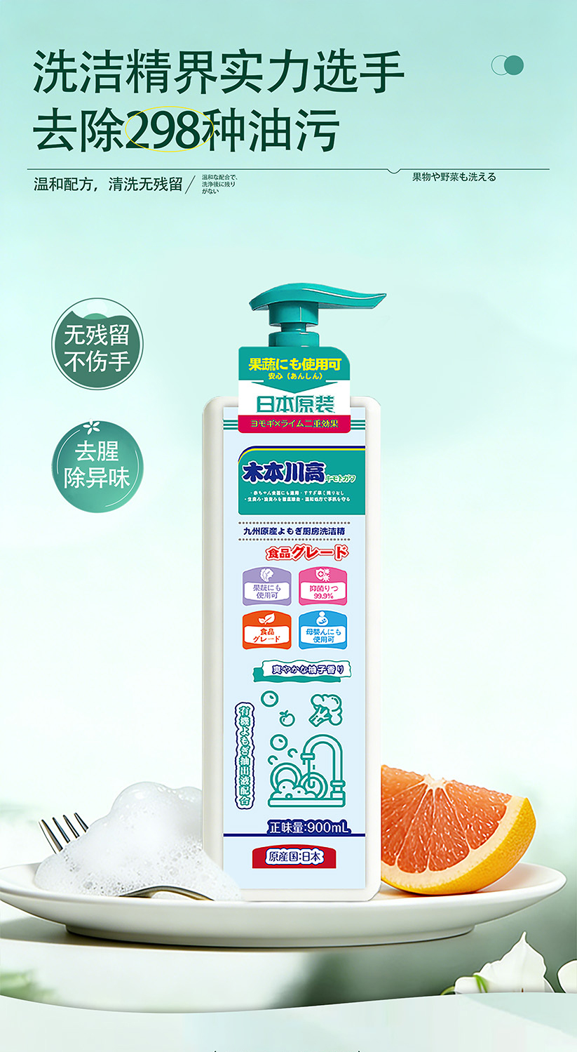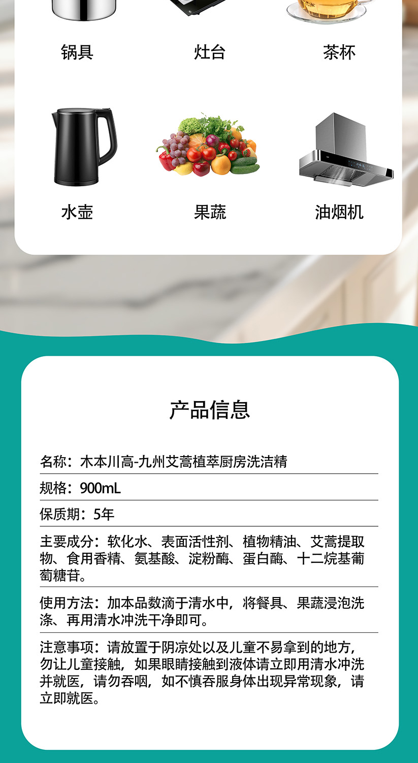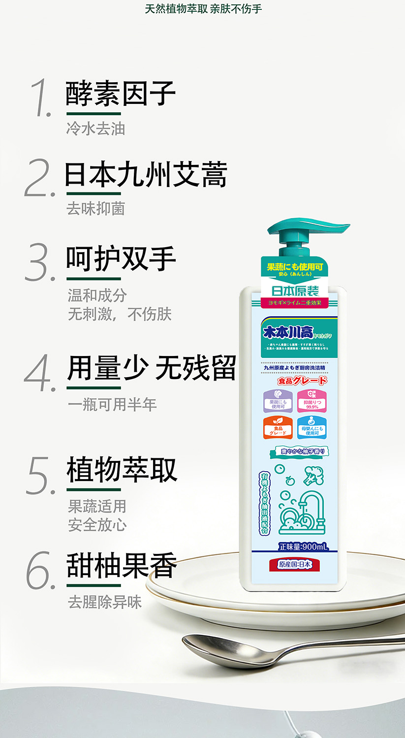 【品名】:木本川高-九州艾蒿植萃厨房洗洁精(日本原装进口2瓶)【规格】:900ml