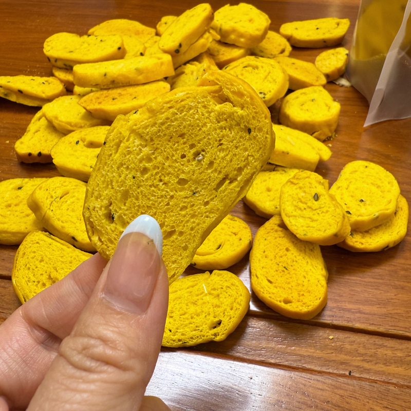 【临安美食】馒头干200g/包,不添加任何添加剂防腐剂,不加白砂糖调味,仅使用小麦粉、南瓜、牛奶、鸡蛋、黑芝麻制作,入口有南瓜的清甜,回味是奶香味。