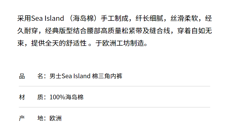 【海岛棉系列】SUNSPEL男士Sea Island海岛棉三角内裤柔软舒适