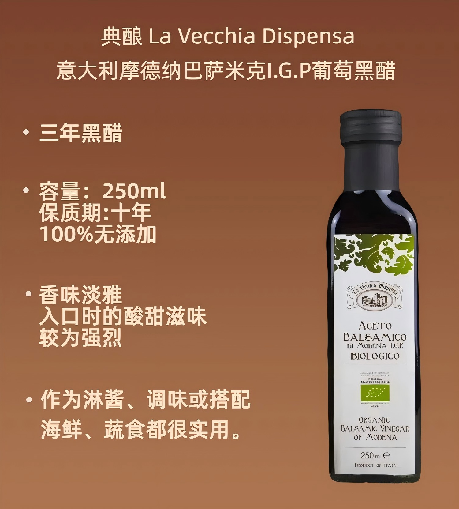 【3年陈酿】意大利进口摩德纳巴萨米克I.G.P葡萄黑醋 250ml 商品缩略图0 【3年陈酿】意大利进口摩德纳巴萨米克I.G.P葡萄黑醋 250ml 商品缩略图1 【3年陈酿】意大利进口摩德纳巴萨米克I.G.P葡萄黑醋 250ml 商品缩略图2 【3年陈酿】意大利进口摩德纳巴萨米克I.G.P葡萄黑醋 250ml 商品缩略图3 【3年陈酿】意大利进口摩德纳巴萨米克I.G.P葡萄黑醋 250ml 商品缩略图4