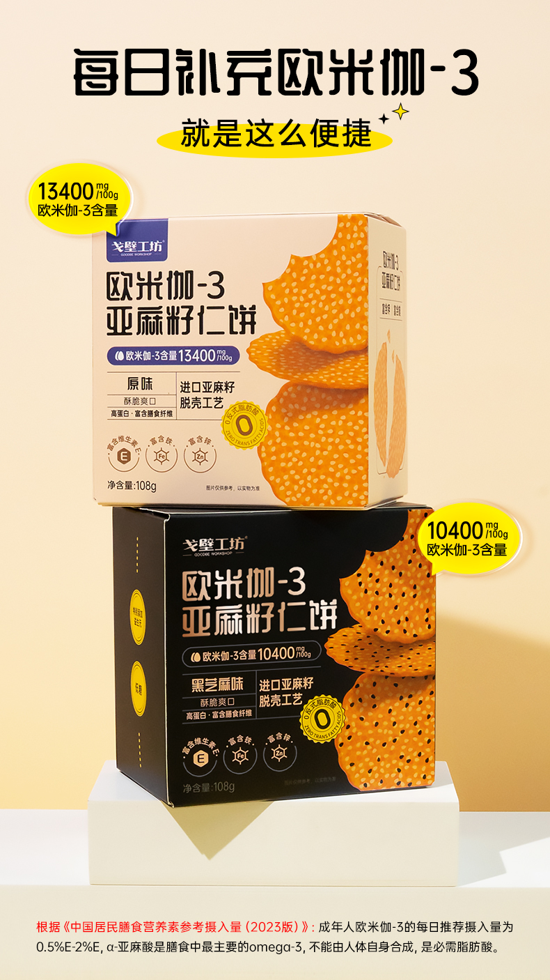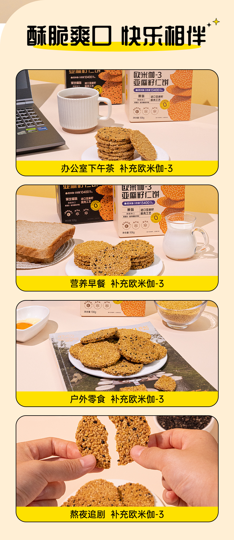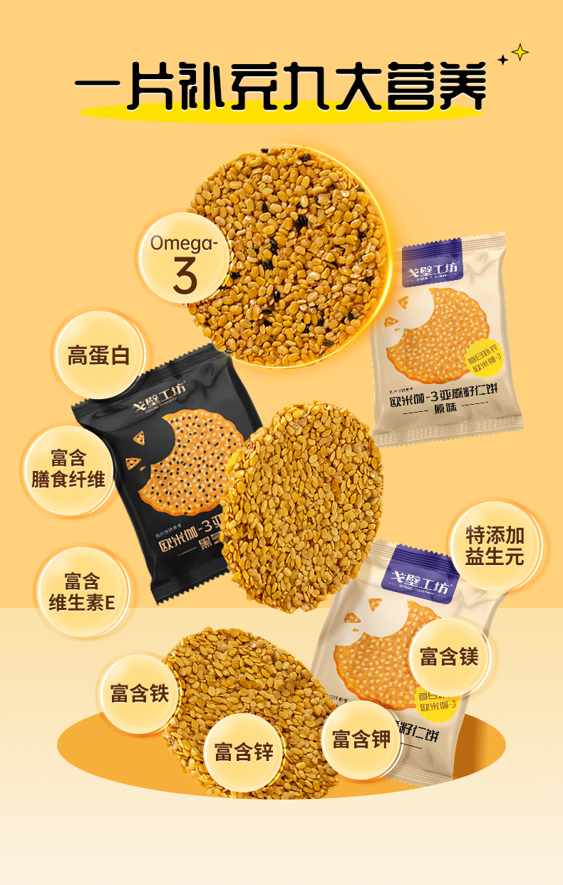 【酥脆爽口】戈壁工坊 欧米伽-3亚麻籽仁饼 108g/盒 1片补充九大营养