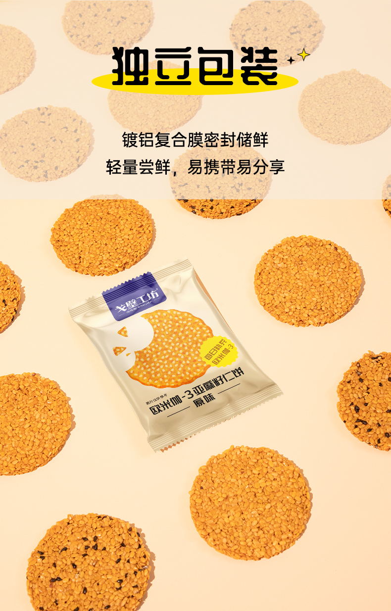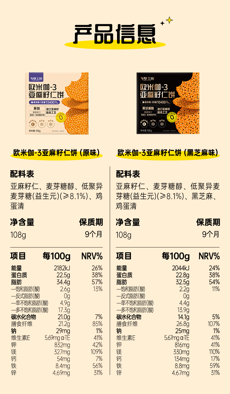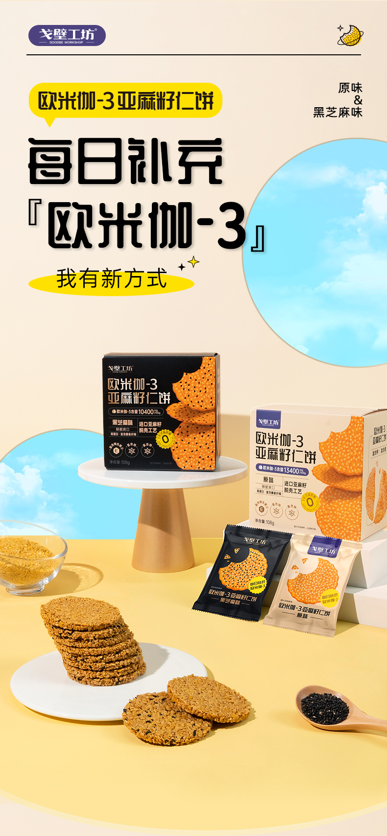 【酥脆爽口】戈壁工坊 欧米伽-3亚麻籽仁饼 108g/盒 1片补充九大营养