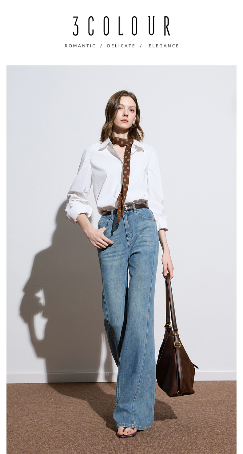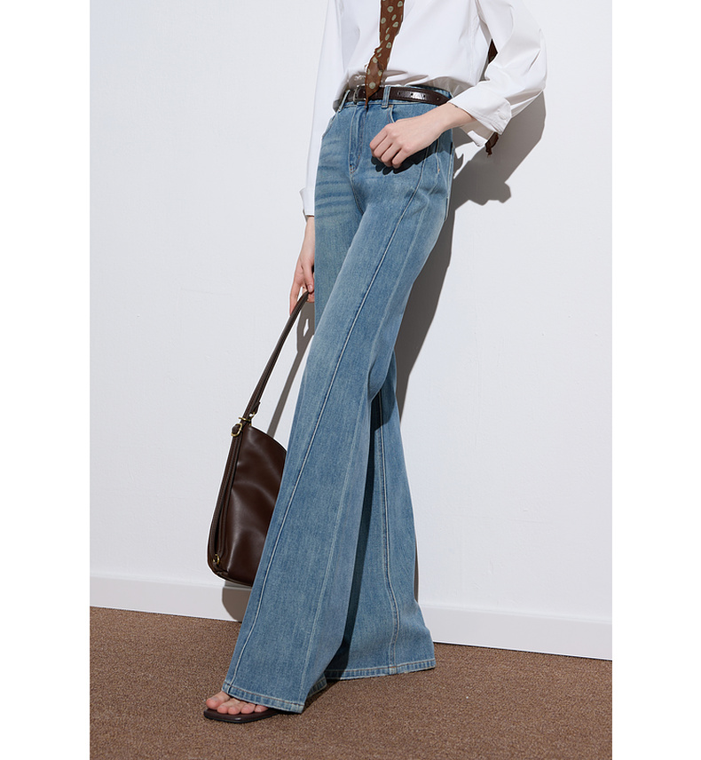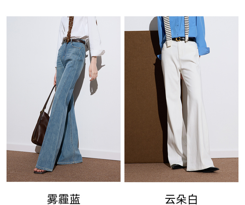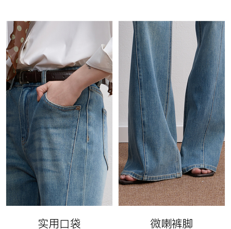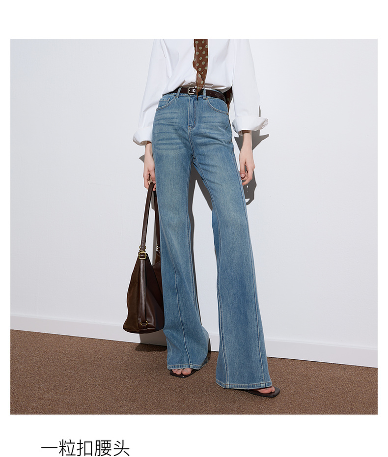 三彩2025秋季新款微喇牛仔裤水洗喇叭裤休闲长裤复古M