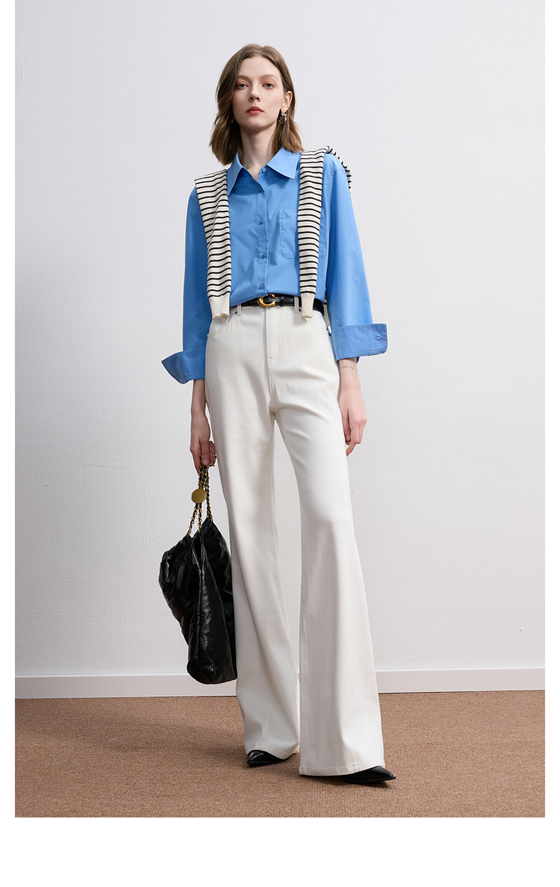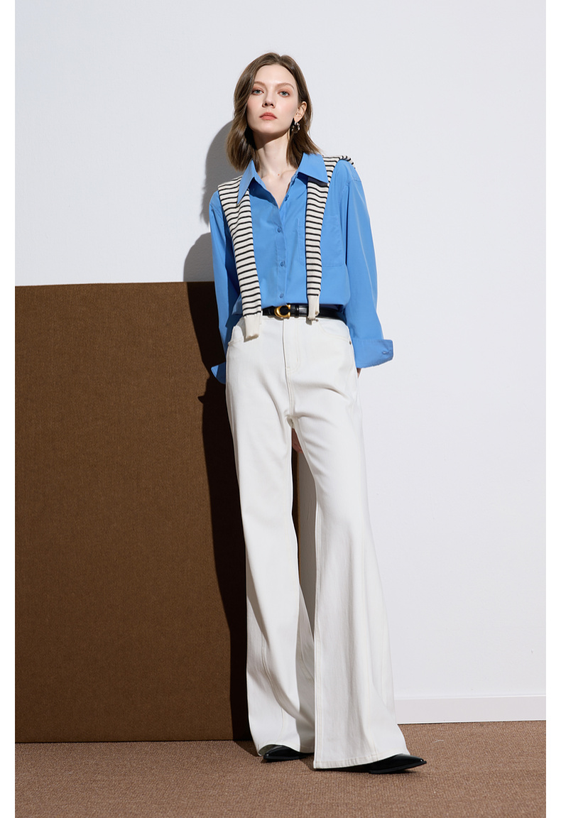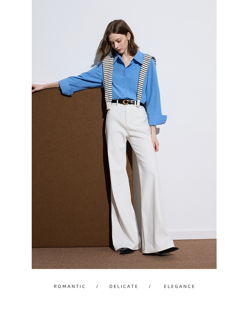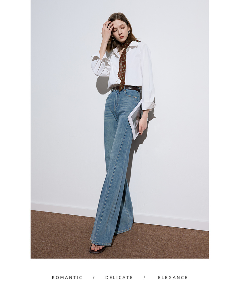 三彩2025秋季新款微喇牛仔裤水洗喇叭裤休闲长裤复古M