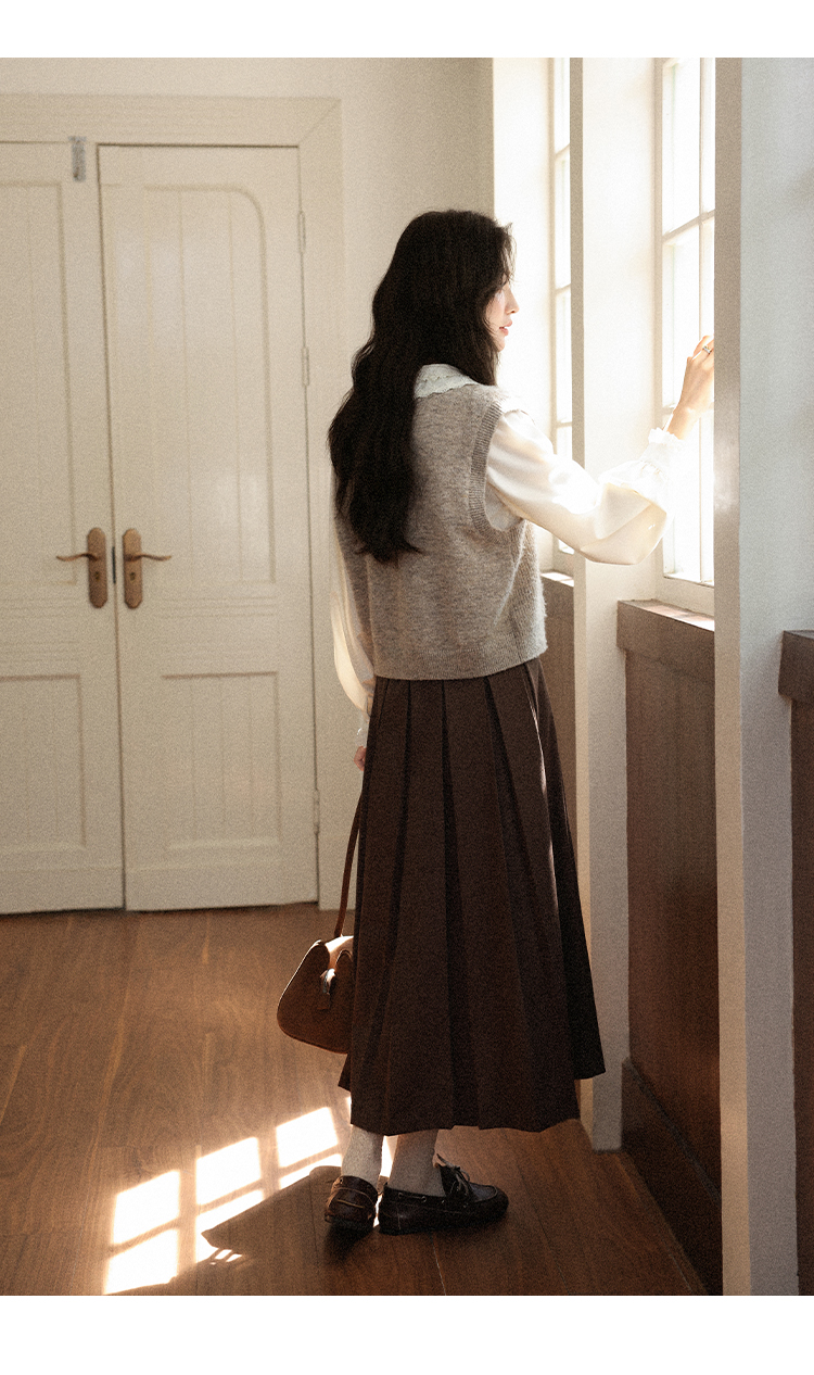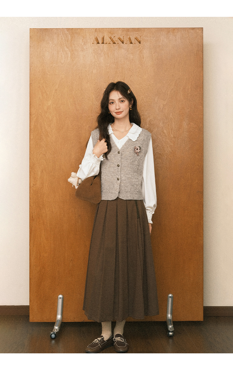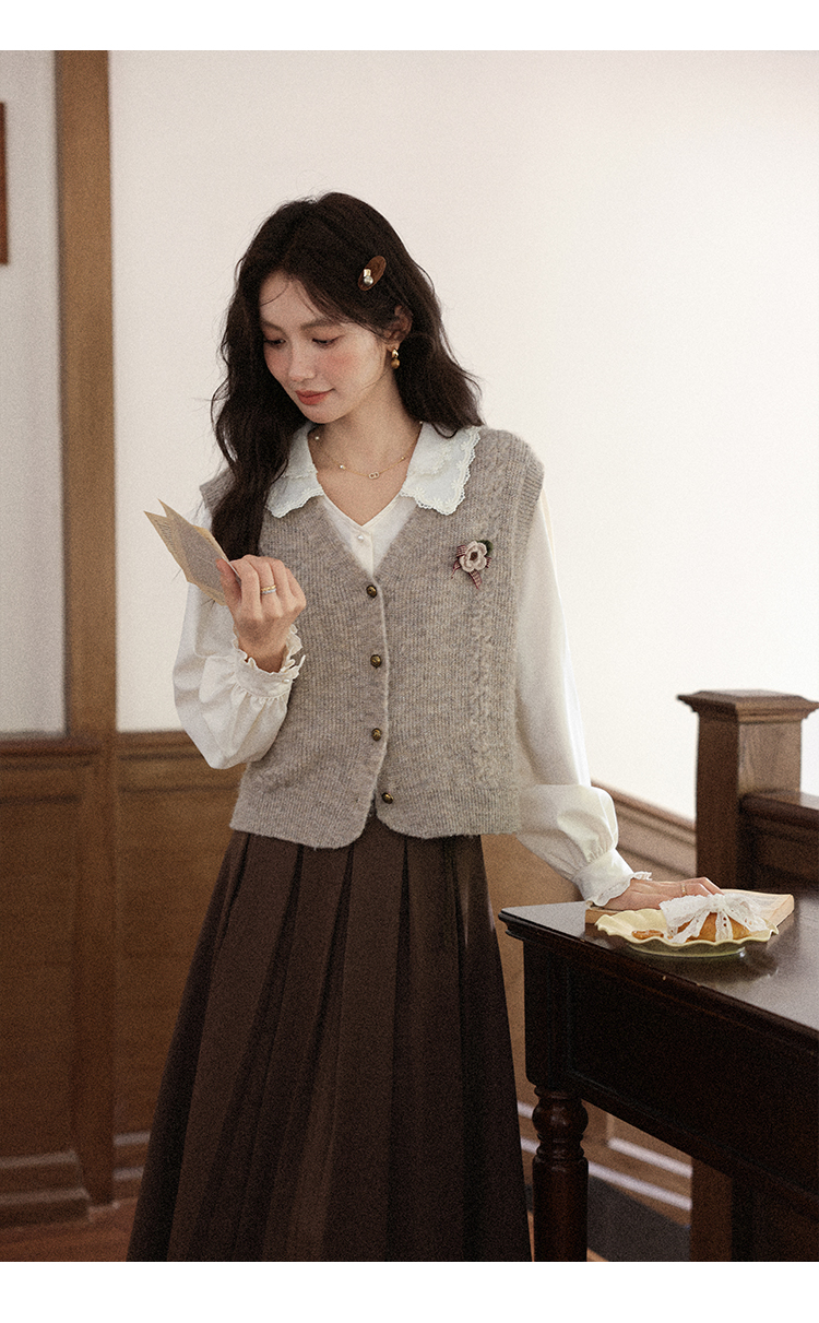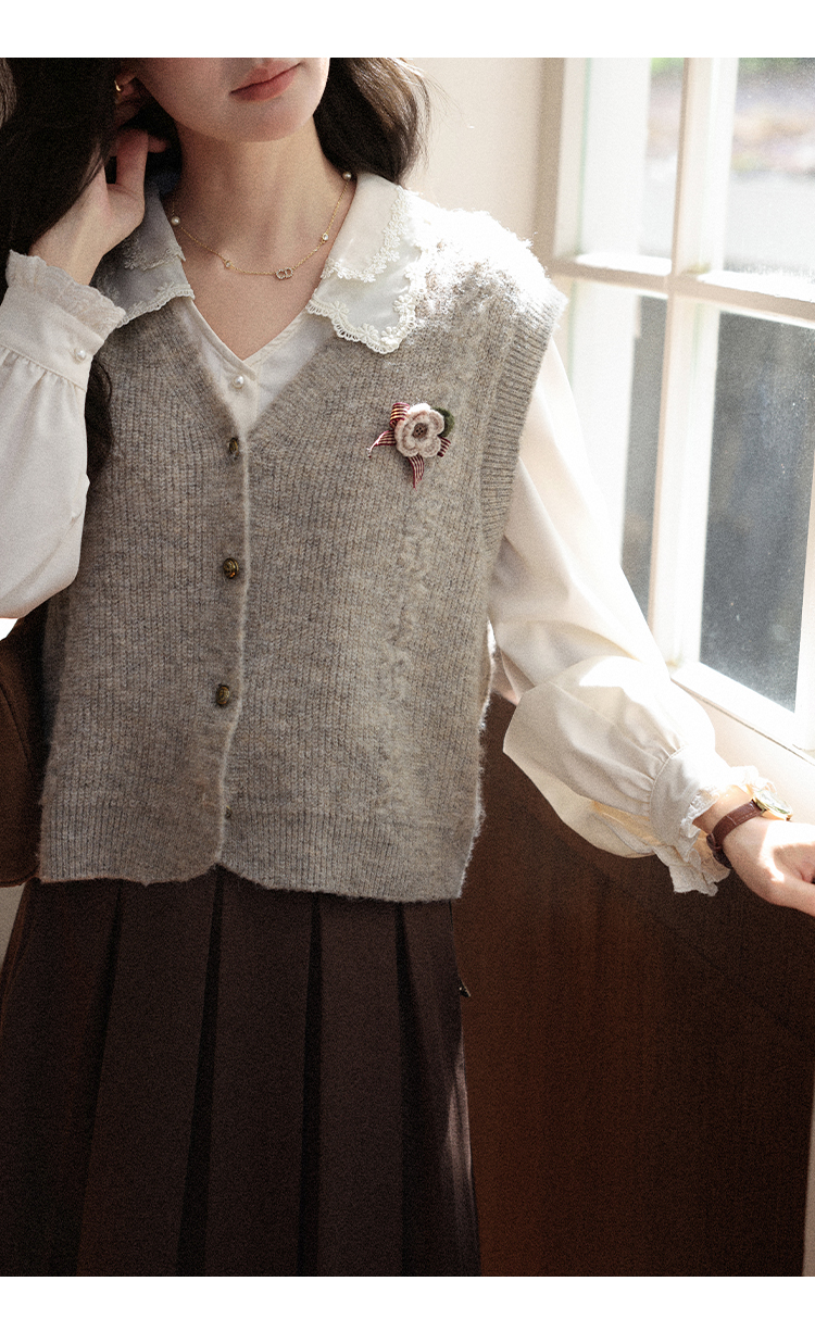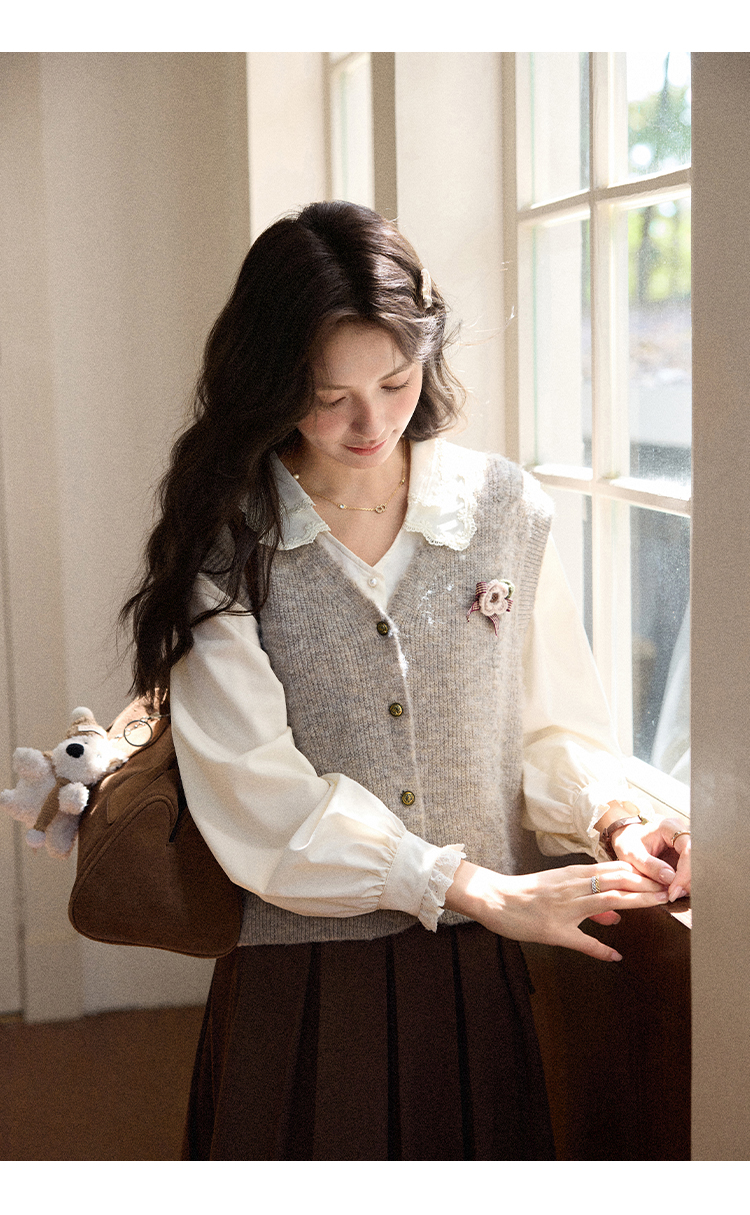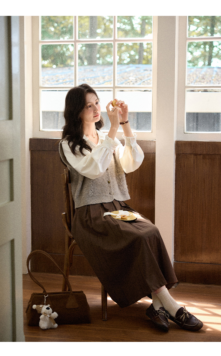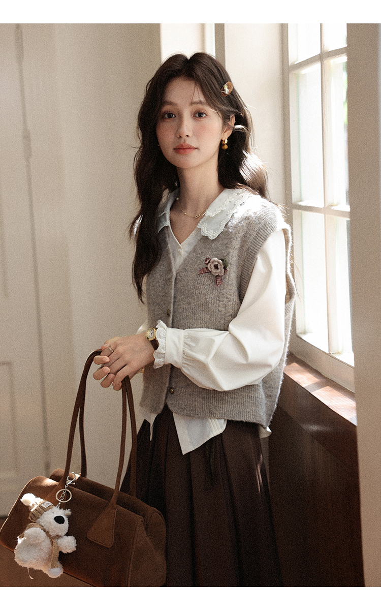 鹿向南「秋风香草」早秋长袖杏色V领衬衫新款休闲宽松显瘦开衫女