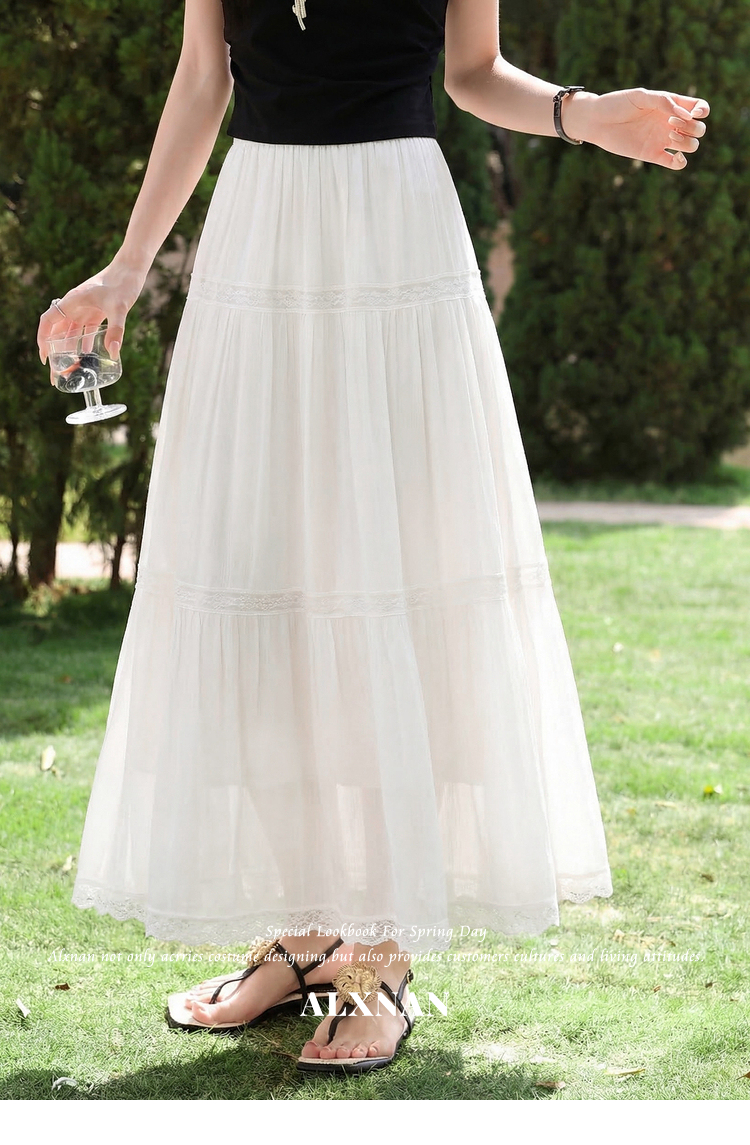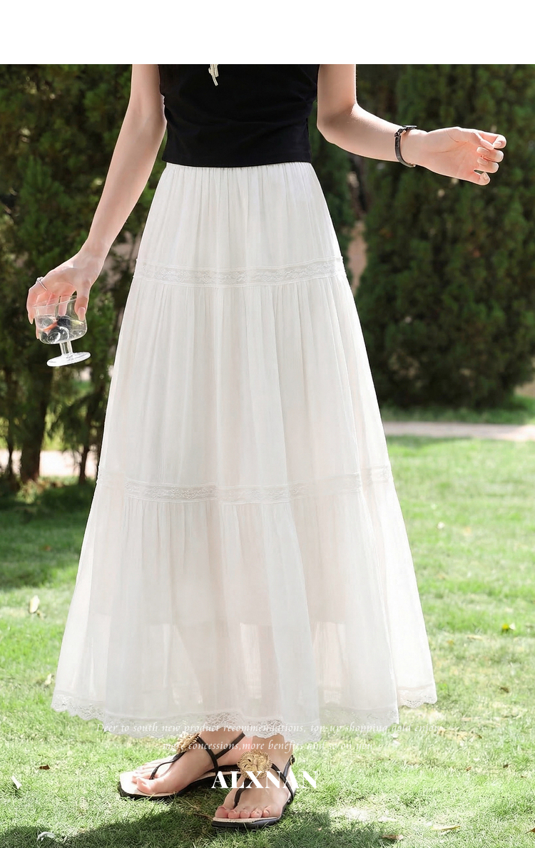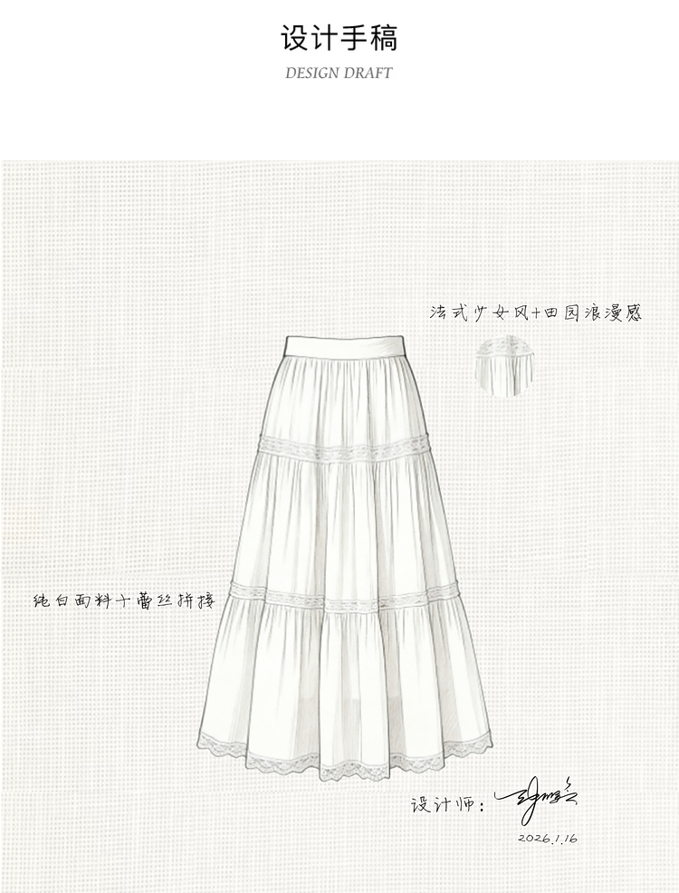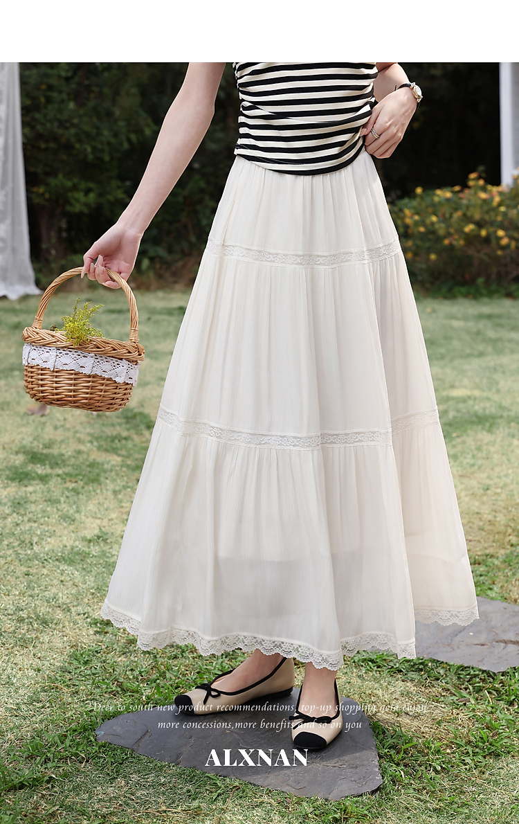 鹿向南「微光絮裙」温柔风杏色蕾丝半身裙女夏季新款巨好看蛋糕裙
