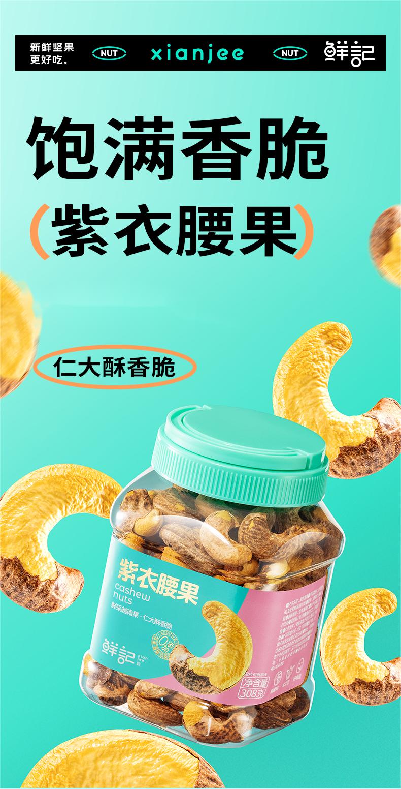 【鲜记】 紫衣腰果 308g 多巴胺罐装