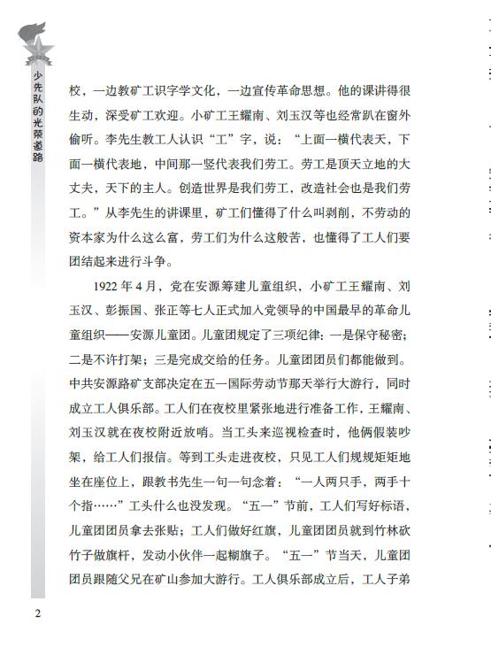 2022年,正值纪念党领导的中国少年儿童运动100周年。在中国共产党、共青团的领导和教育下,涌现出数不清的少年英雄、优秀少先队员和少先队集体,这是少先队的骄傲,也是少先队员的榜样。习*总书记多次发表重要讲话,其中在“心有榜样”一段指示中,对中国当代少年儿童提出,要向在中国革命、建设、改革事业中涌现出的少年英雄学习,以他们为榜样,向他们看齐,像他们那样追求美好的思想品德。所以,向广大少先队员宣传介绍中国革命战争时期和中华人民共和国成立后中国少年先锋队组织中的少年英雄故事,适逢其时!