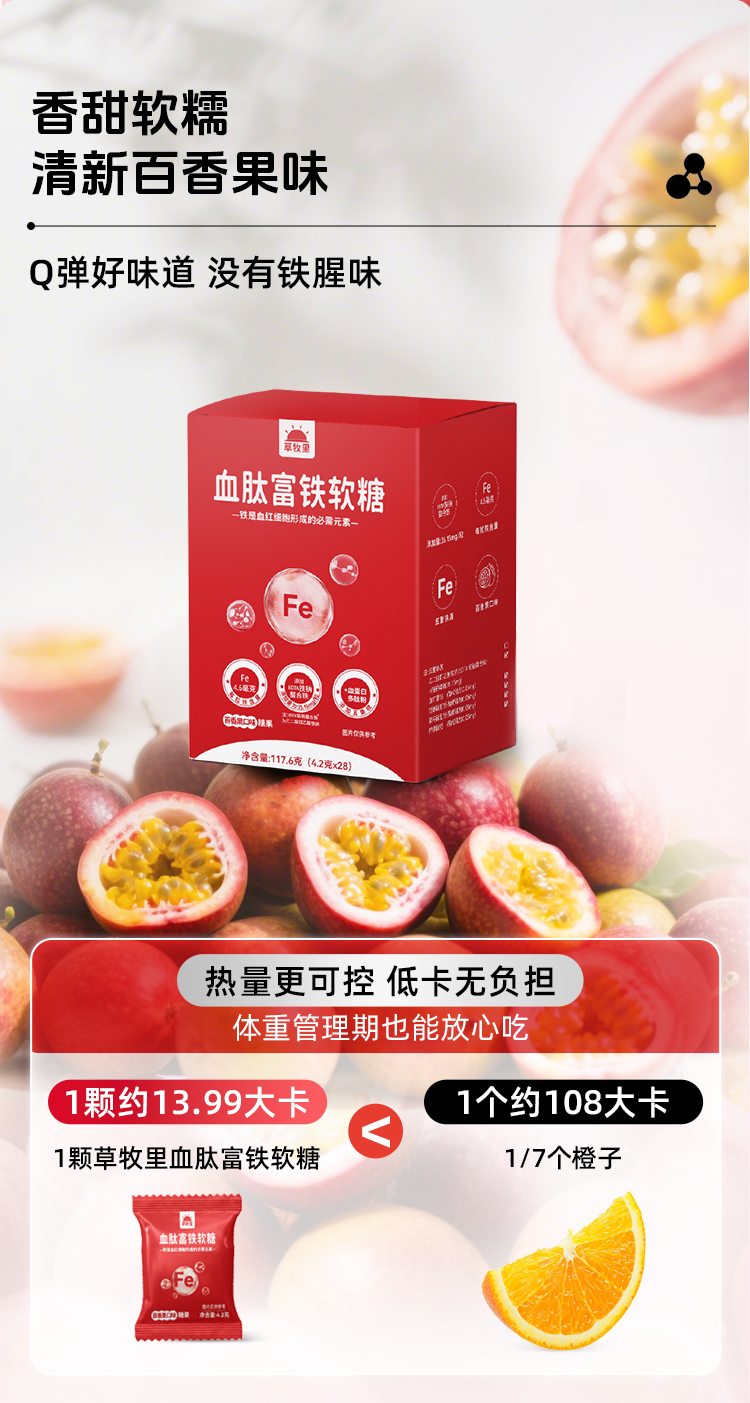 【100积分+19.9元】草牧里 血肽富铁软糖 4.2g*28/盒 5重铁源配方