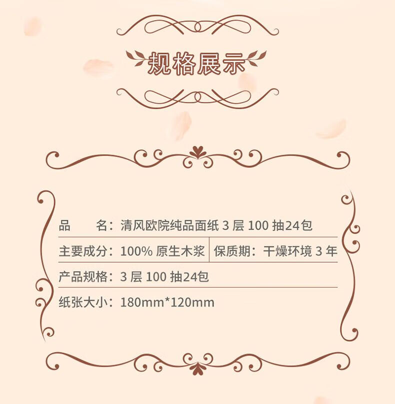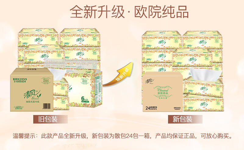 清风欧院纯品抽纸3层100抽24包整箱装BR82XSS