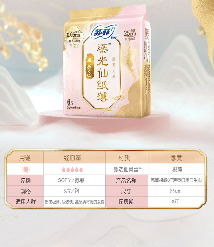 苏菲裸感S鎏光仙纸薄系列日用卫生巾250 6片*6包_xd