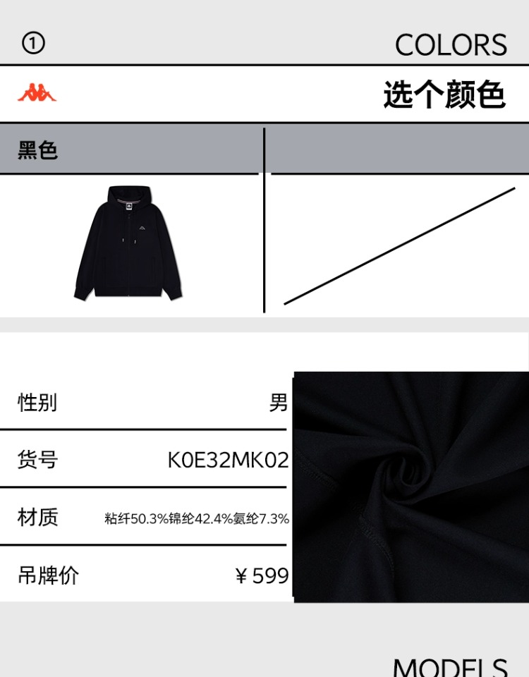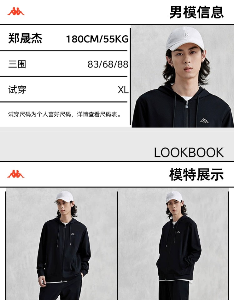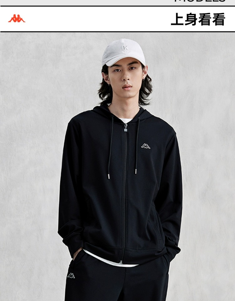 Kappa卡帕复古开身帽衫2024新款男凉感运动卫衣长袖外套K0E32MK02