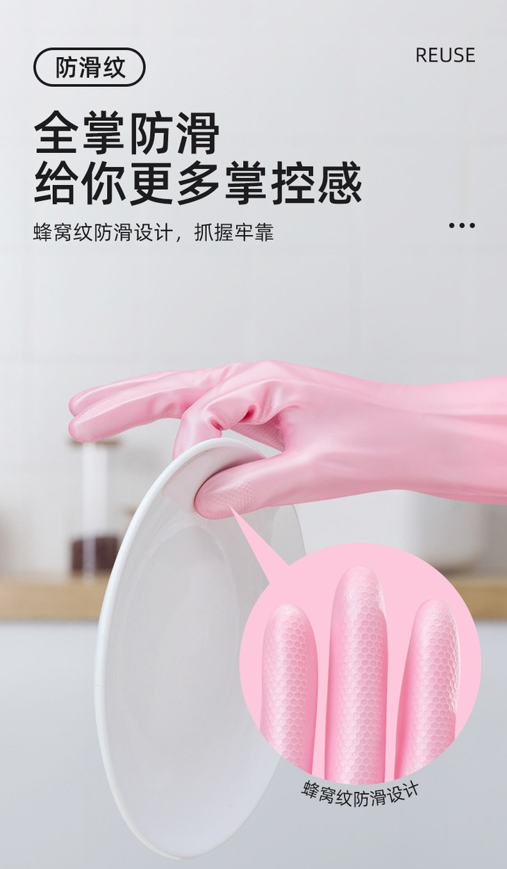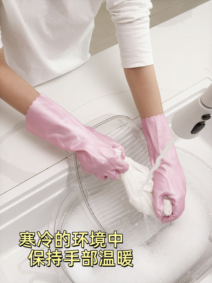 🔸 亲肤保暖——告别冻手,温暖每一刻! 冬天做家务时, 手冷真的是一大难题! 内里特别加入了植绒设计 隔绝寒冷的空气 温暖你的双手