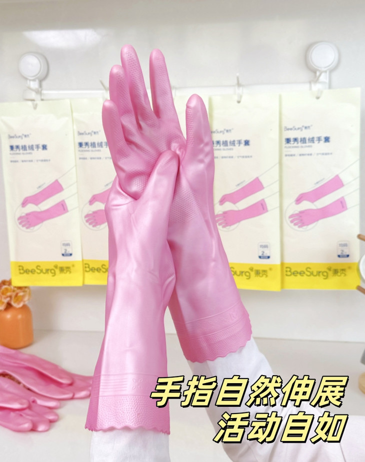 无论是清洁厨房、擦洗窗户,还是洗菜洗碗 它都能保护双手 让我们一起看看这款秉秀植绒手套到底有多神奇吧!