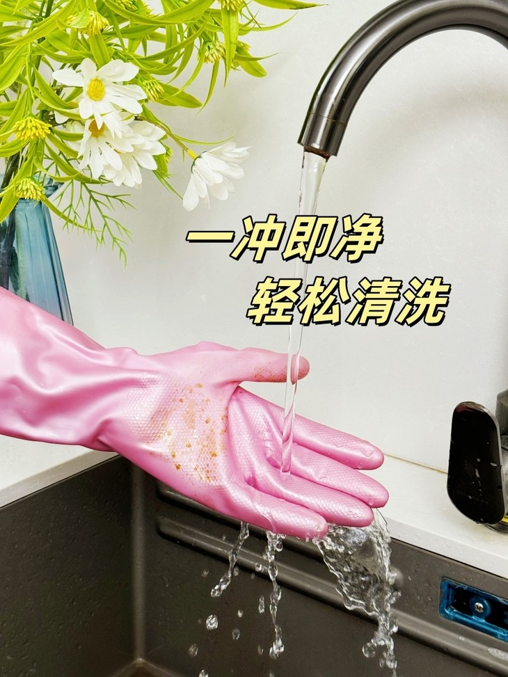 🔸 一冲即净,轻松清洗 做完清洁工作后 洗净这款手套简直轻松到不行! 只需要用水一冲 就能轻松去除污渍