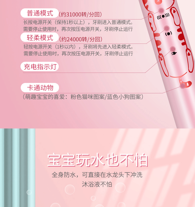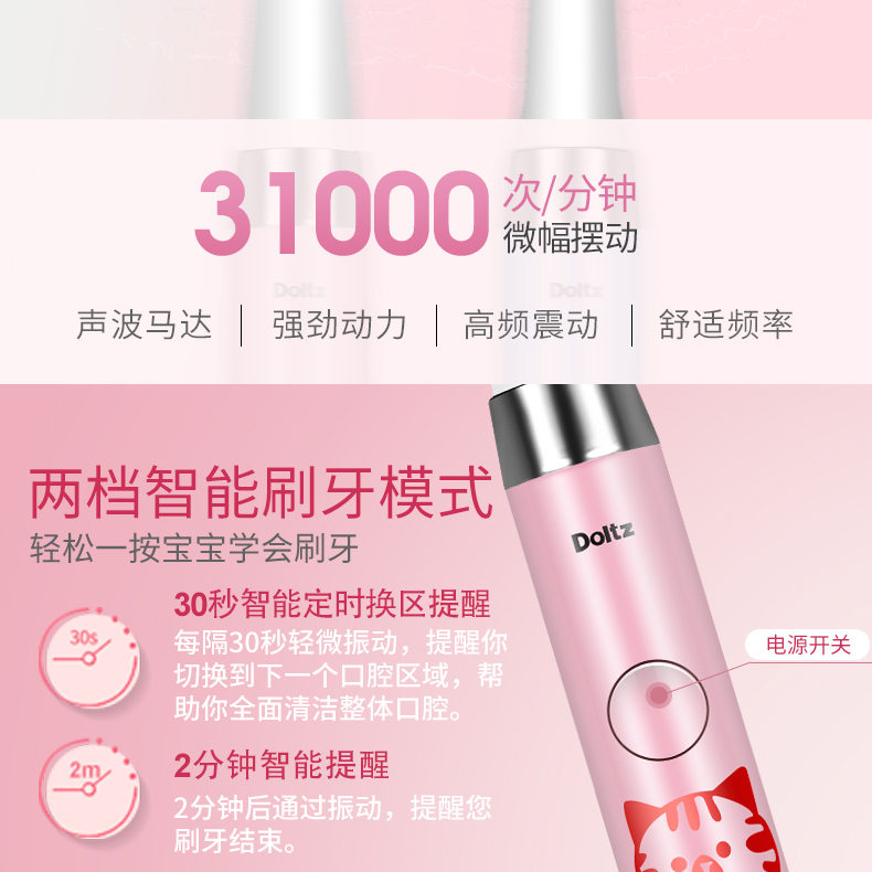 松下(Panasonic) 儿童电动牙刷软毛声波振动充电式6-12岁男女全身水洗全自动智能震动牙刷 EW-DM31