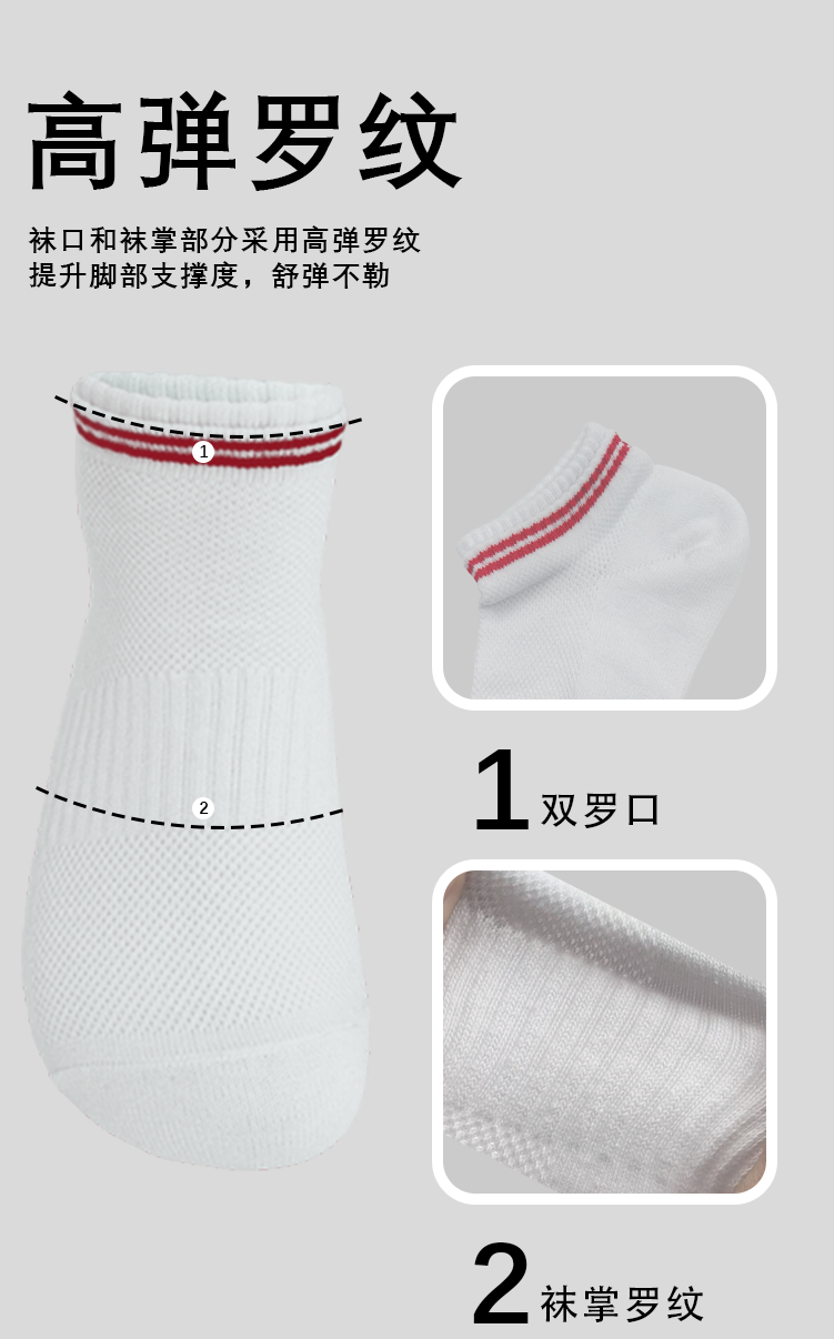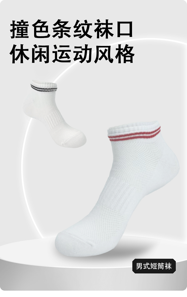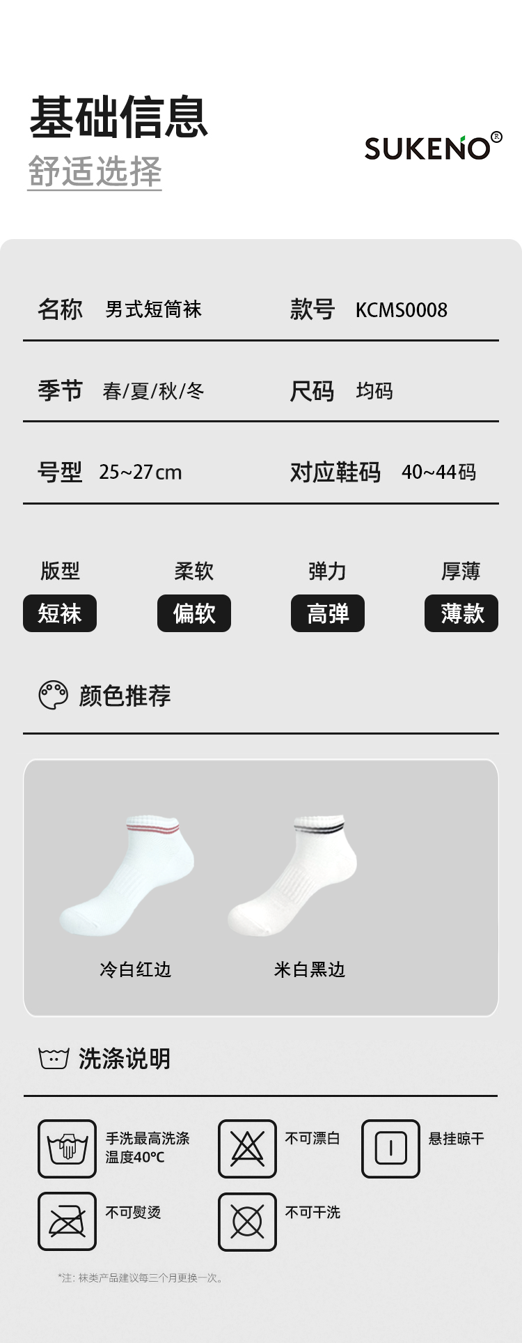 SUKENO男袜纯棉短袜纯色百搭双罗口设计条纹袜子