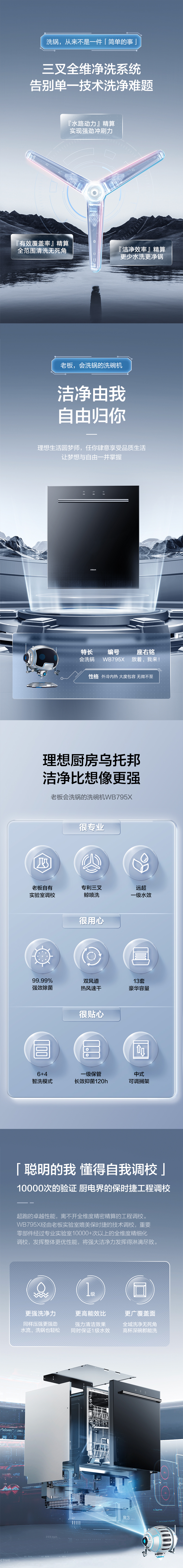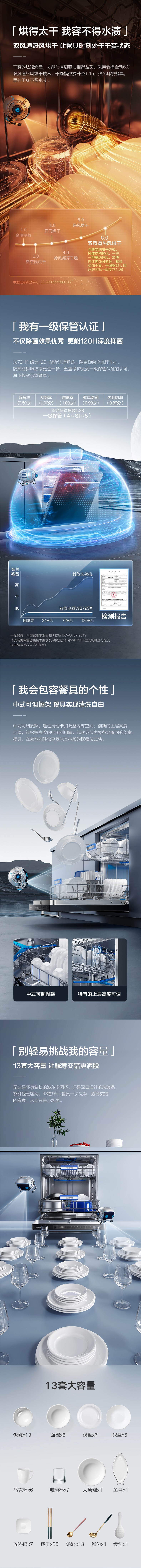 【王一博同款】老板洗碗机WB795X全自动家用嵌入式13套热风烘干