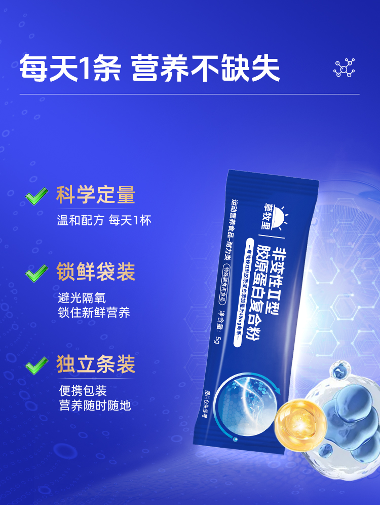【低温萃取】草牧里 非变性Ⅱ型胶原蛋白复合粉 150g(5g*30)/盒 科学组配