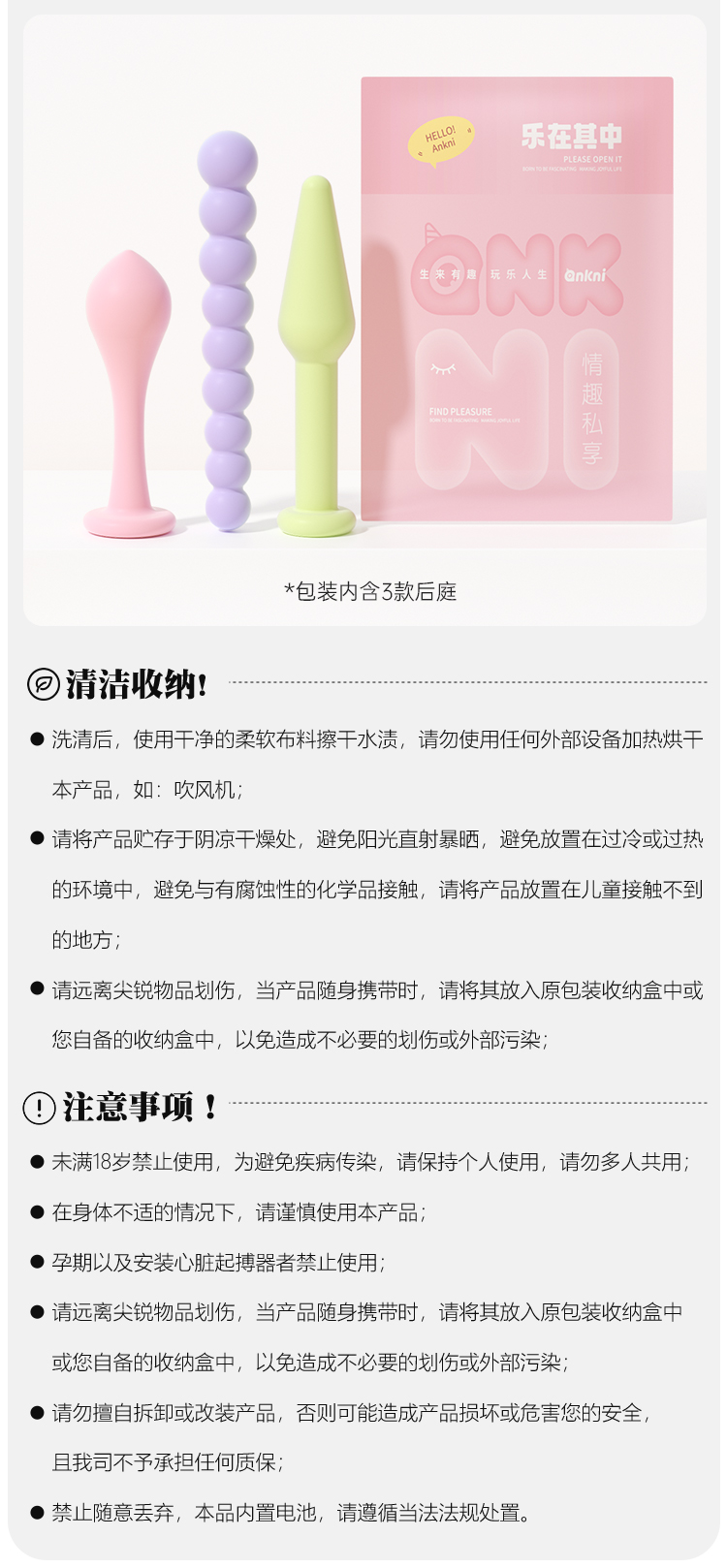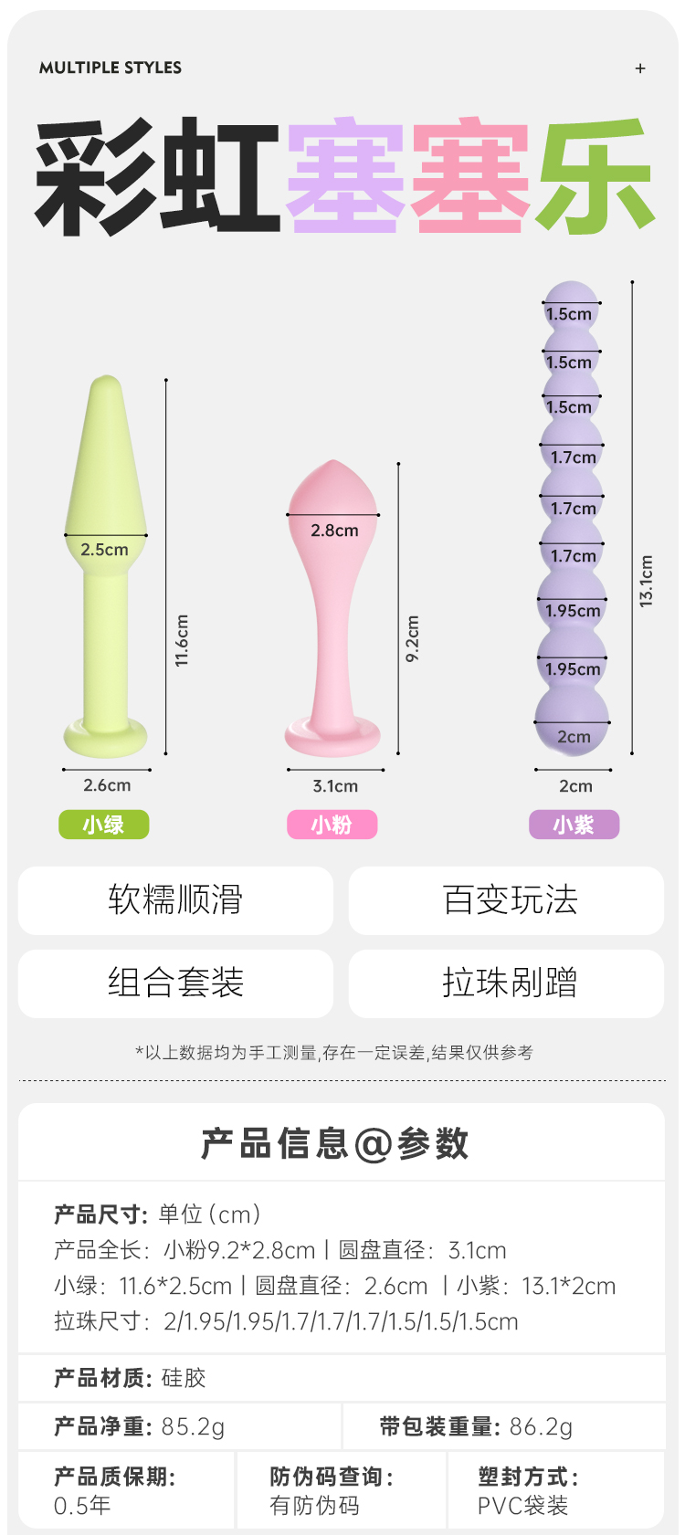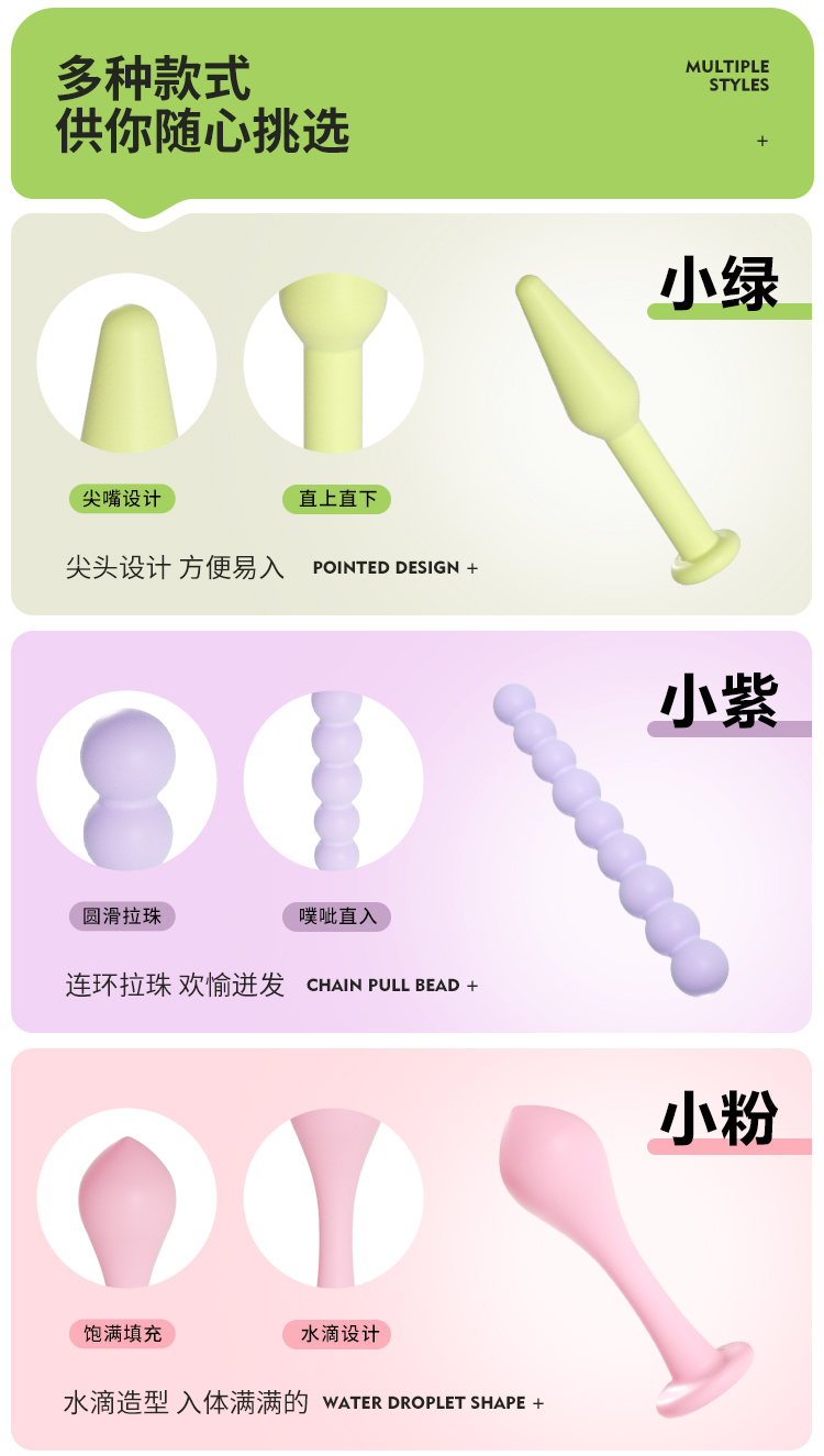 【安可尼】彩虹塞塞乐 肛塞 三支装 多巴胺肛塞