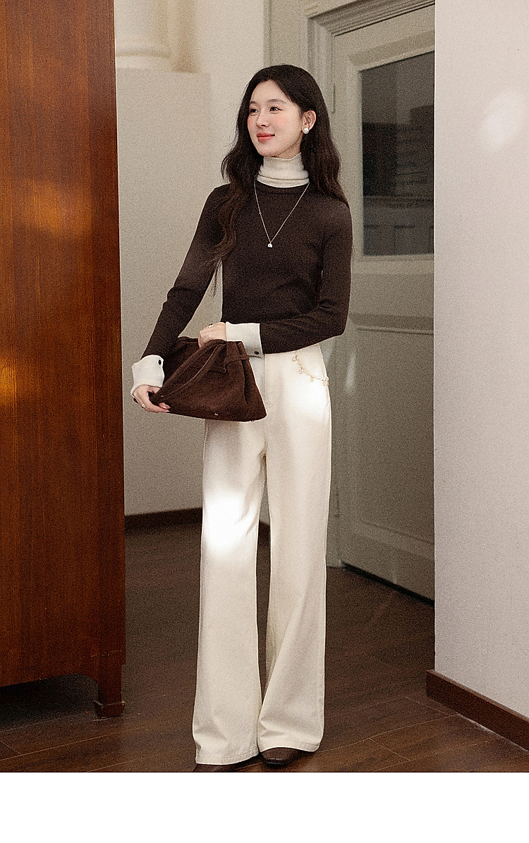 鹿向南「莉泽栗织」棕色直筒休闲裤女秋冬季修身微喇显瘦垂感长裤