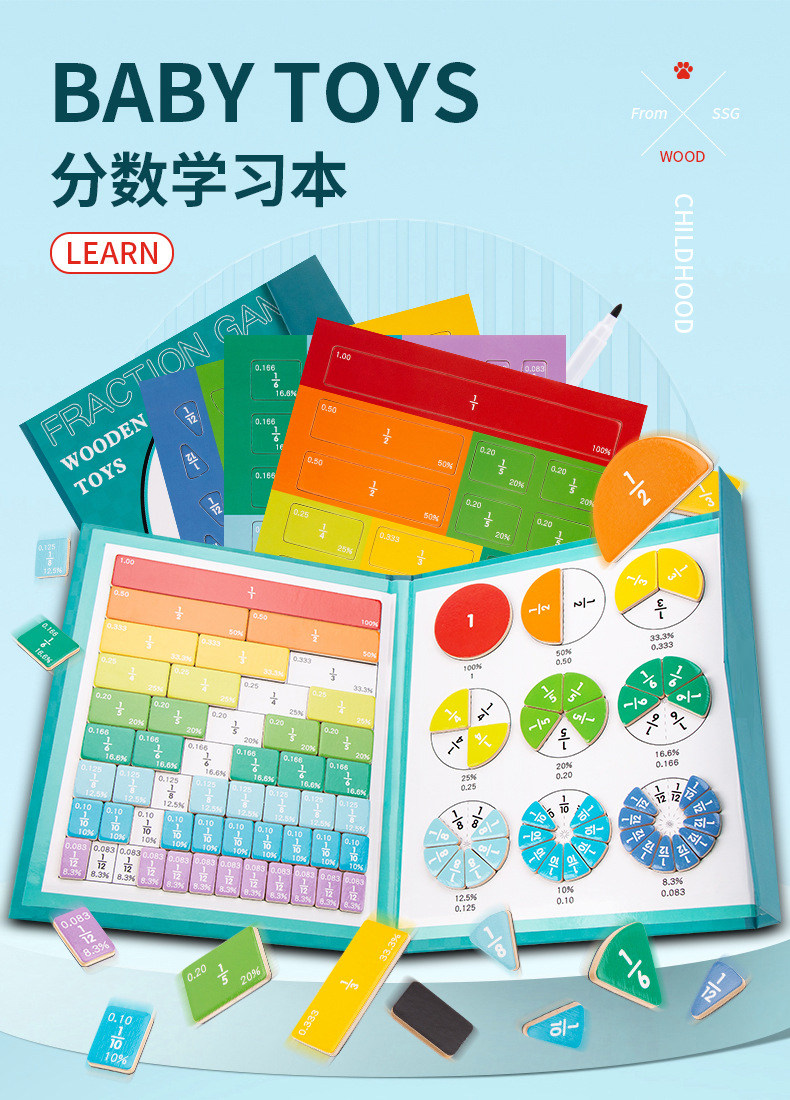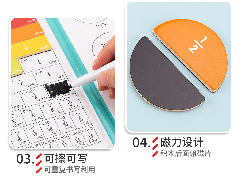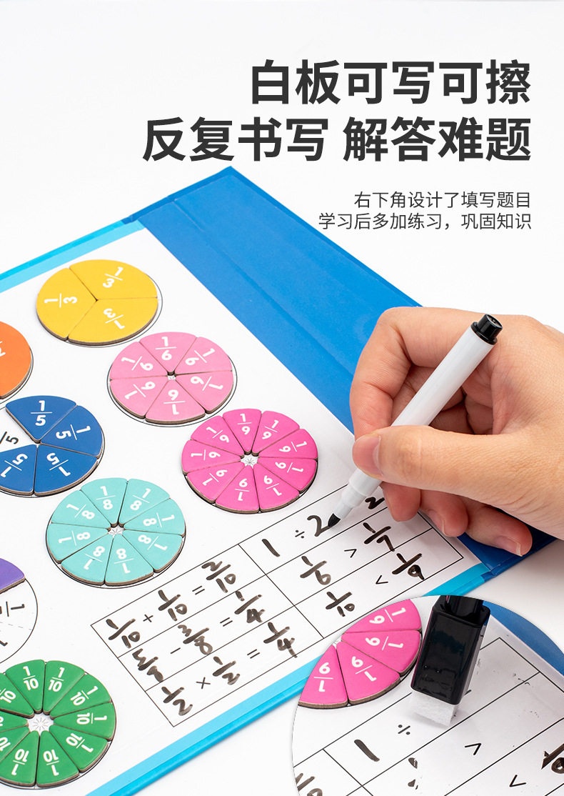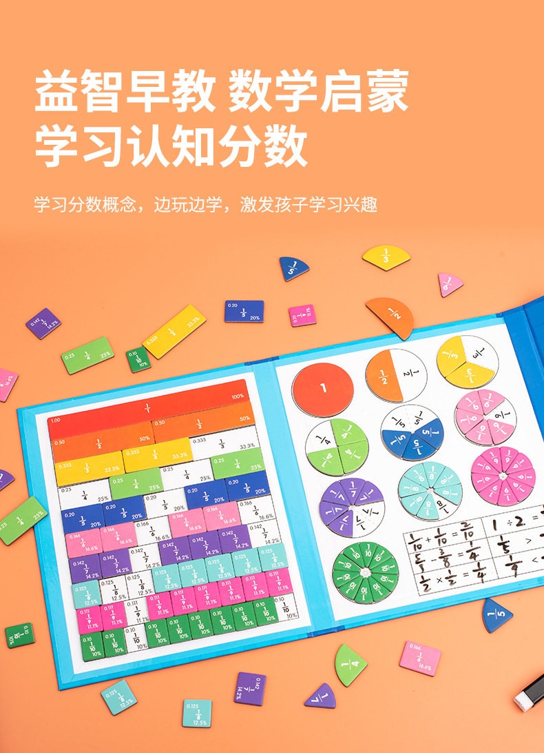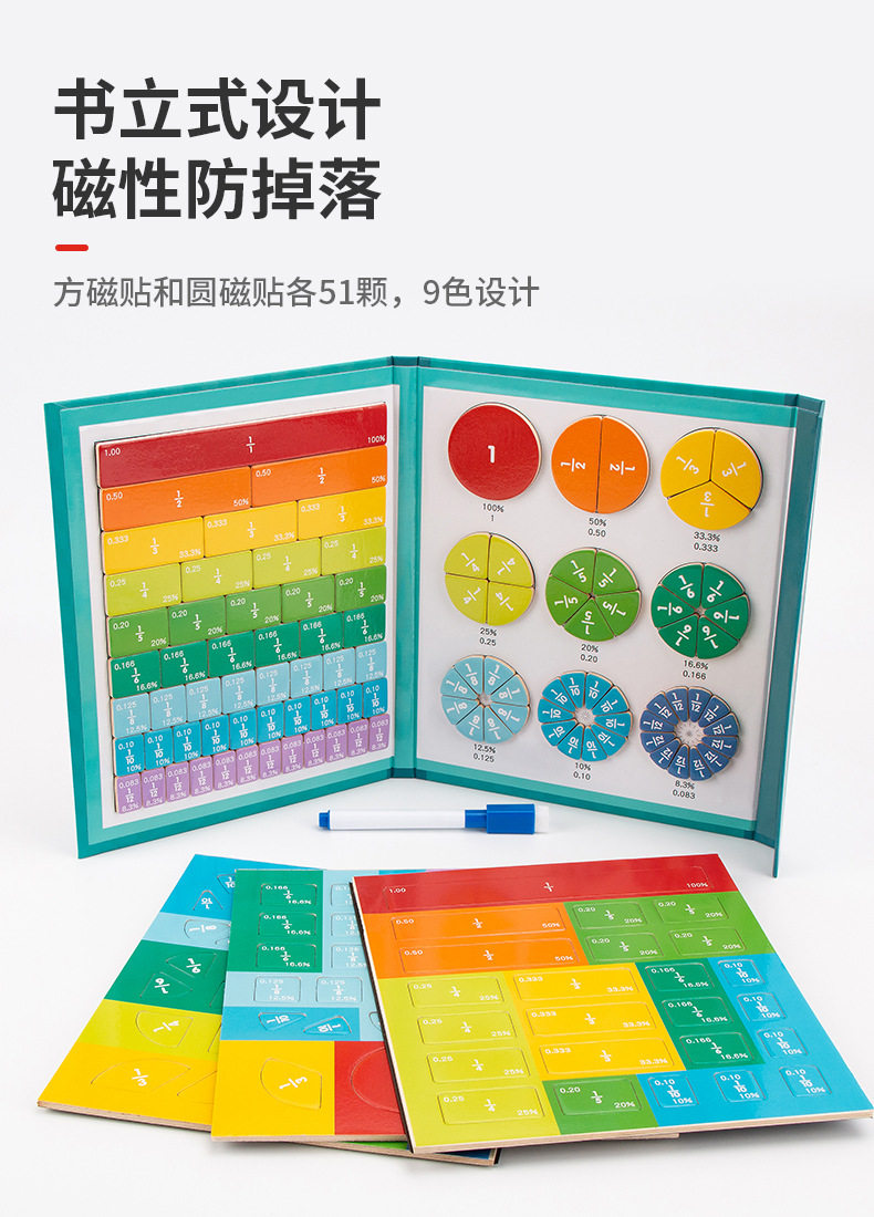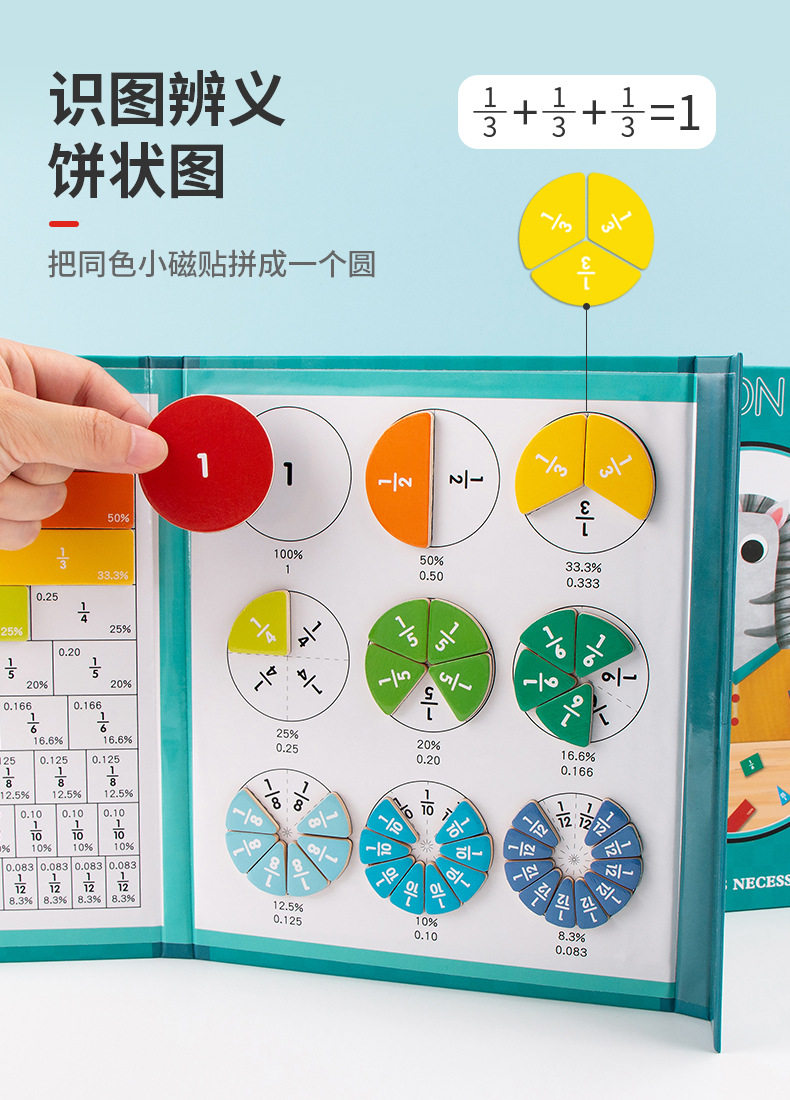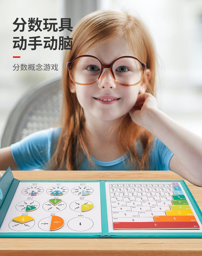 儿童磁性分数教具书 书夹式分数盘 数学教具益智早教玩具 3-6年级专用
