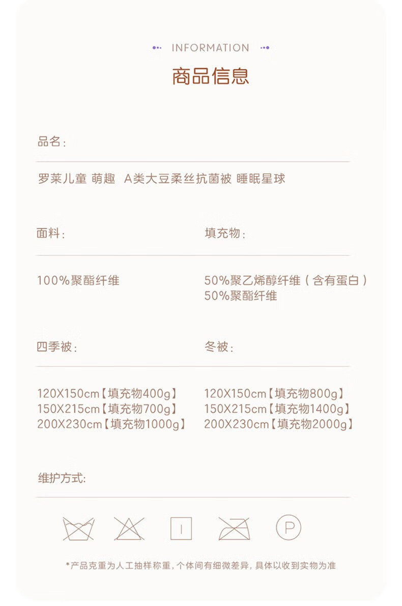 罗莱儿童XS 萌趣 W-A类大豆柔丝四季被 睡眠星球