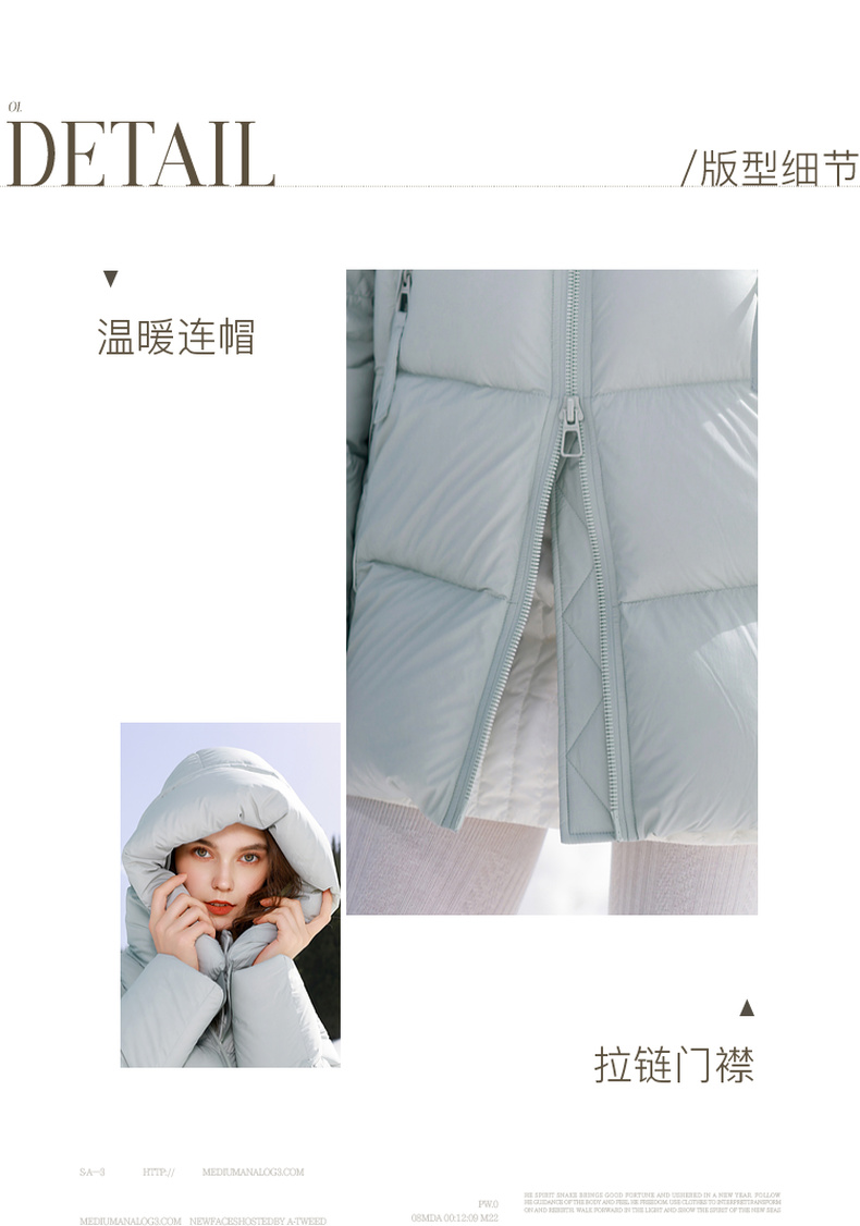 【防水易打理】三彩2025冬季新款连帽羽绒服90白鸭绒中长M